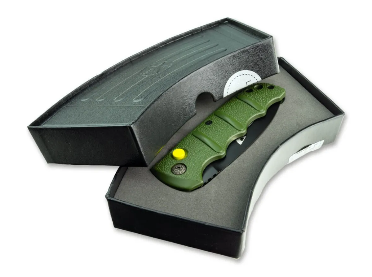 Like Its Little Brother, The Exclusive Boker Plus Bhq Aks-74 Warhawk Is Reminiscent Of The Famous Curtiss P-40 Warhawk Fighter Plane From World War Ii. Much Like The P-40 Warhawk, The Boker Plus Aks-74 Is A True Landmark In Terms Of Speed And Strength. It Features A Yellow Push Button And Red Clip That Complete The Nostalgic Design Of The Blade. The Aluminum Handle Is Strongly Reminiscent Of The Famous Assault Rifle’S Bayonet, And The Raised Textured Panels Provide A Secure Grip In Any Situation. The Coated Spearpoint Blade Is Made Of Aus-8 Stainless Steel And Can Be Secured By Slide Lock In Addition To The Push Button. With Lanyard Hole And Red Deep Carry Clip (Tip-Up/R).