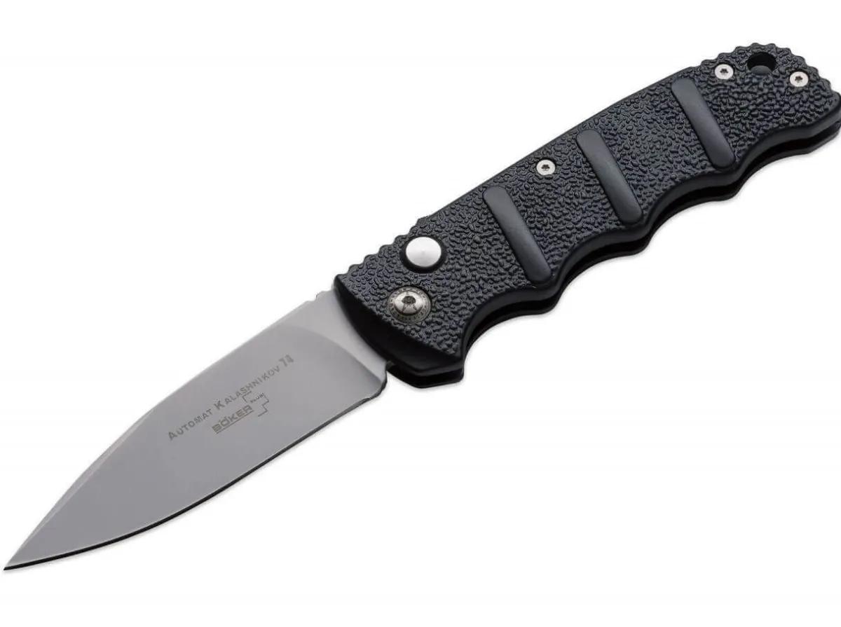 This New Interpretation Of The Kalashnikov Series. The Xl Version Of The Popular Aks-74 Models. The Handle Is Similar To The Ak 74 Bayonet. The Blade Is Made Of Aus-8 Stainless Steel. Structured Finger Grooves On The Aluminum Handle Provide A Secure Grip. Push Button Lock With A Black Handle And Bead Blast, Plain Edge, Includes Belt/Pocket Clip.