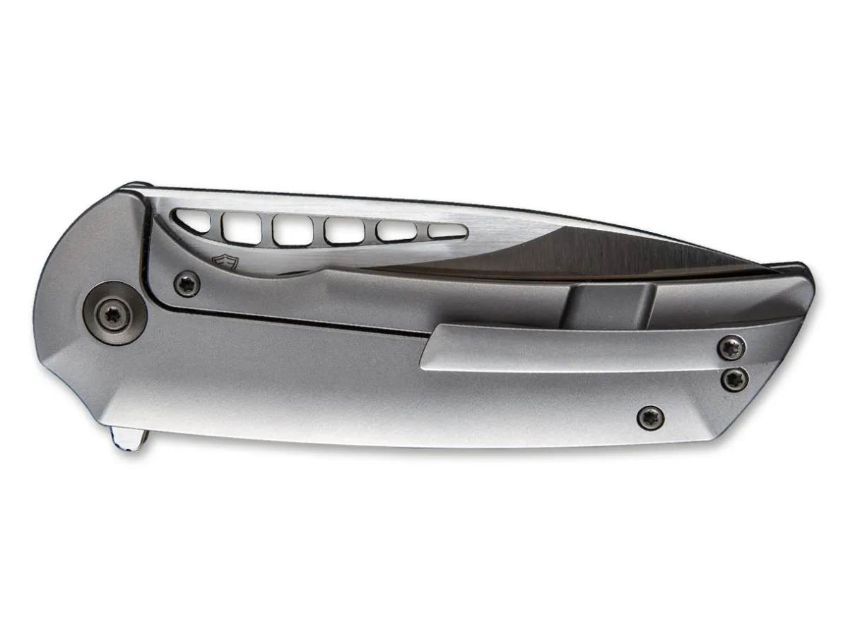 The Wide Drop-Point Blade With Cutouts Consists Of Bohler M390 And Opens With A Flipper. The Ceramic Ball Bearings Ensure Smooth And Easy Blade Movements. The Pivot Cap, Solid-Milled Clip And Screws Also Consist Of Titanium. A Solid Utility Knife For A Wide Range Of Cutting Jobs.