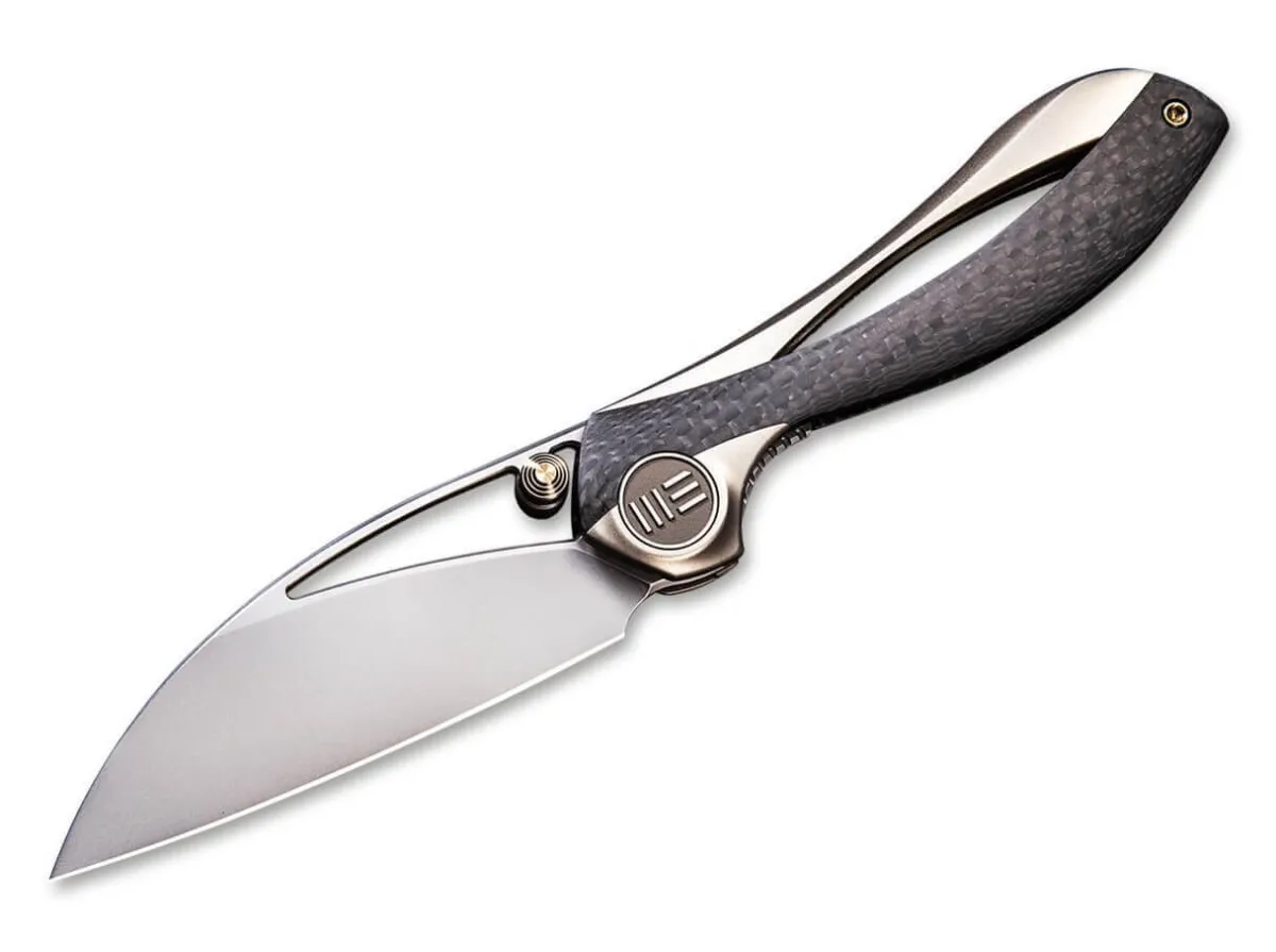 This Extravagant Design By Elijah Isham Is Fascinating In Its Innovative Shapes And Lines. The Curved Handle Consists Of Titanium And Carbon Fiber, Secured With The Inserted Stainless Steel Liner. The Blade On Ball Bearings Made From Bohler M390 Has A Free-Floating Thumbstud, Skillfully Continuing The Curve Of The Handle. The Completely New Construction Is Proof That Even Today, True Innovation In The Field Of Folders Is Still Possible. The Clip And Screws Are Titanium, Of Course.