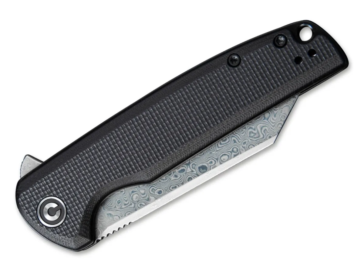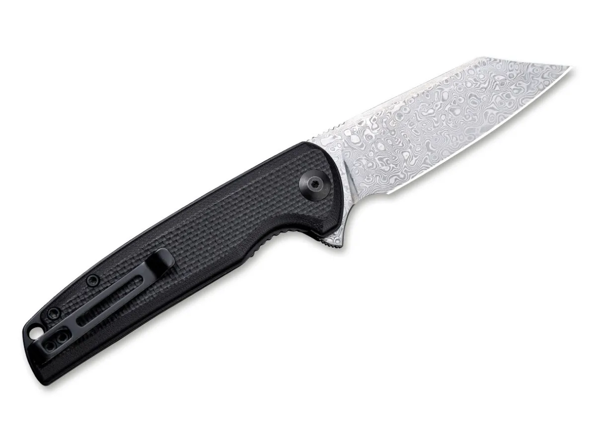The Civivi Brigand Is Most Notable For Its Dramatic Wharncliffe Blade, But Has Some Other Great Features Too. This Brigand Has A Damascus Steel Blade, Which Opens With A Flipper And Is Secured With A Linerlock. The Textured, Black G10 Handle Scales Ensure A Good Grip And Excellent Strength. With Lanyard Hole And Detachable Clip (Tip-Up).