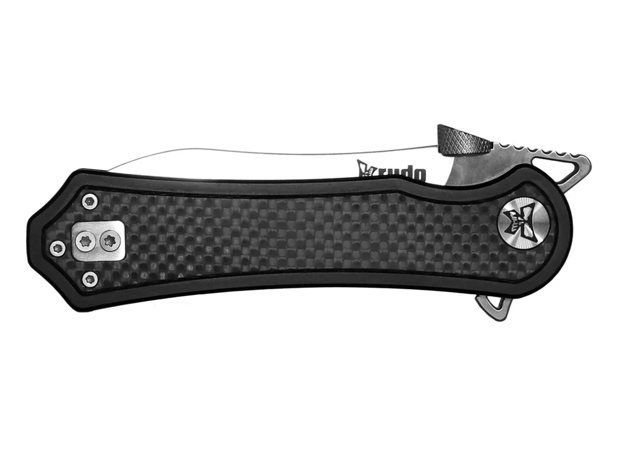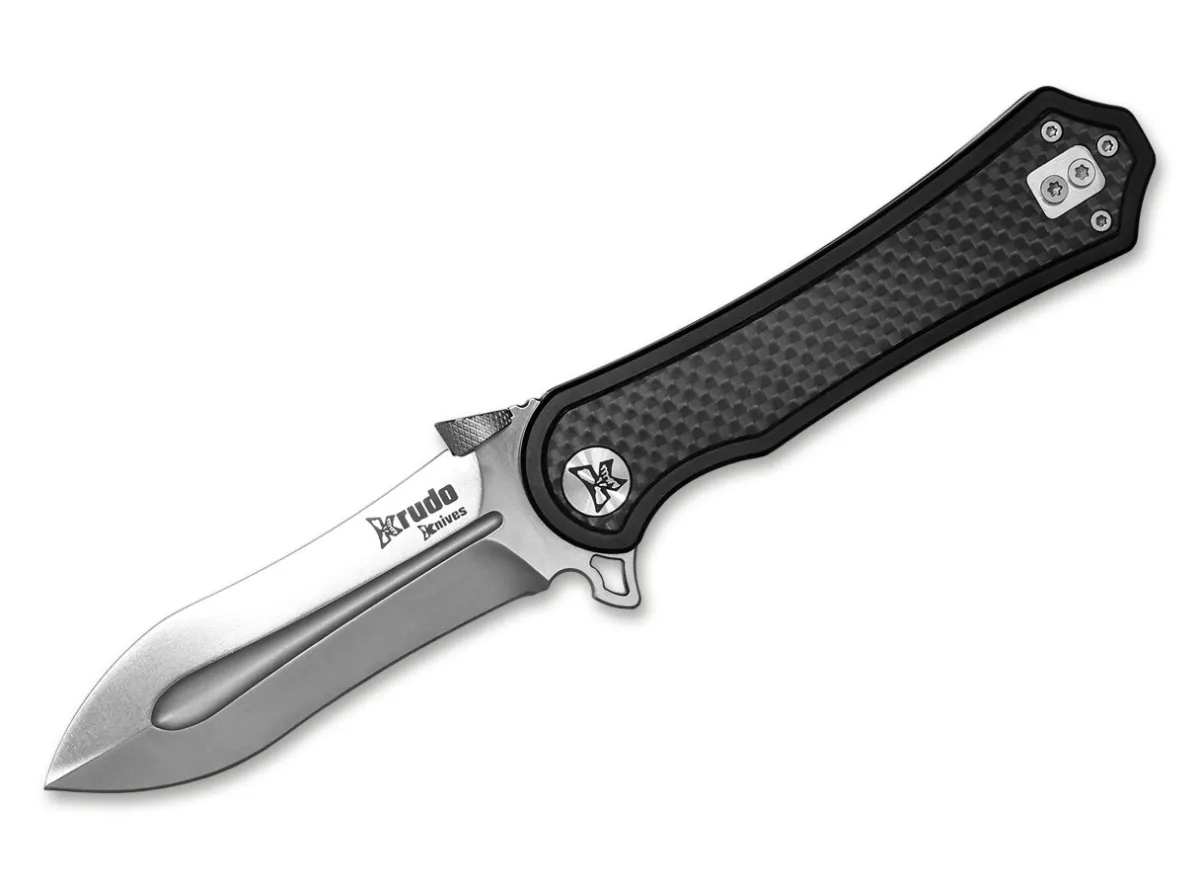 With The Drastik Folder, Louis Krudo Is Going For A Somewhat Drastic Design. One Recognizable Source Of Inspiration Is The Tradition Of European Swords That May Have Inspired Krudo To Come Up With This Extraordinary Pocketknife. The Curved Line Of The Handle Is The Striking Finish And A Beautiful Contrast To The Leaf-Shaped Blade. Carbon Fiber Inlay, The Titanium Handle And Other Premium Features Create The Pleasant Overall Look. The 9Cr18Mov Blade On Ball Bearings Opens Via Thumb Wedge (Also Works As An Opening Hook On The Pocket Seam) Or With A Front-Or Standard Flipper. With Framelock And Reversible Clip (Tip-Up/L-R).