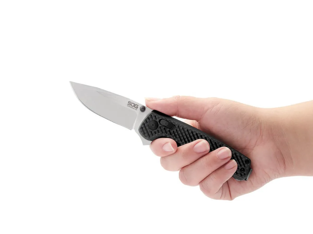 Unlike The First Version Of The Sog Terminus, The Terminus Xr Is Not A Slipjoint. The Blade Opens With A Flipper Or Thumb Stud And Locks With The Xr-Lock, Which Is Easy And Comfortable To Operate Via The Side Slide In The Handle. The Blade Of This Variant Is Made Of Powder Metallurgical Cpm-S-35Vn. The Handle Scales Consist Of A Lightweight Laminate Of G10 And Carbon Fibre. With Reversible Deep-Carry Clip (Tip-Up/L-R).