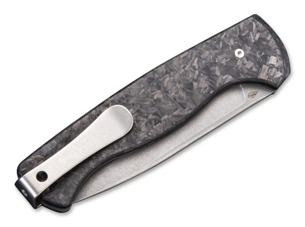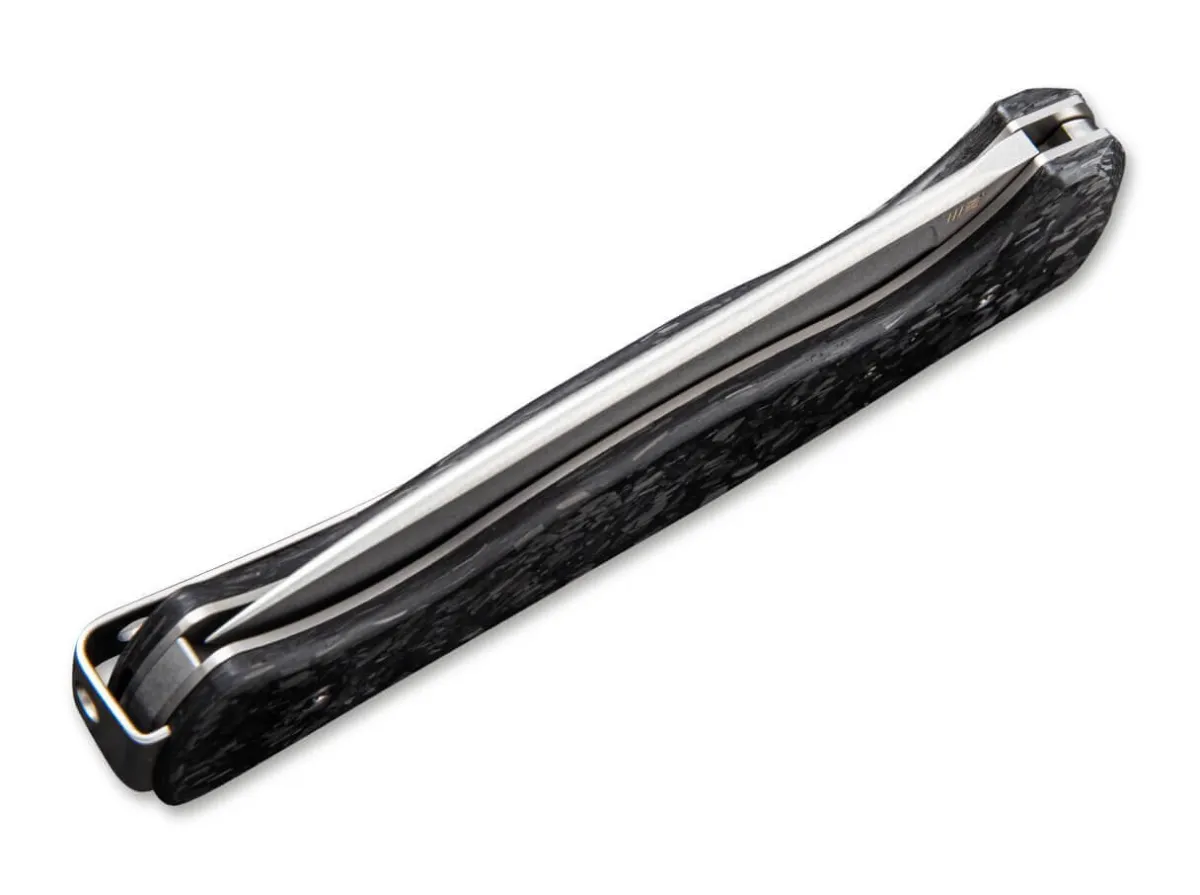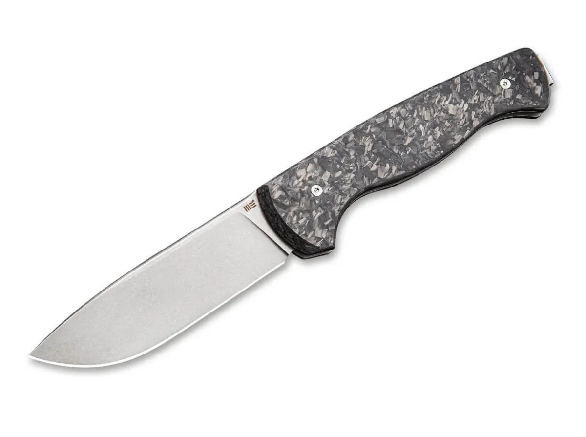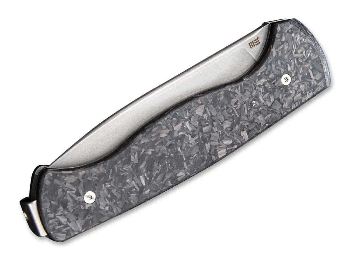 Das Feine Slipjoint-Messer Mrf Von We Knife Entstand In Zusammenarbeit Mit Messermacher Markus Reichart, Der Vor Allem Fur Feststehende Messer Bekannt Ist. Dieses Messer Ist Mit Einer Breiten Droppoint-Klinge Aus Cpm-S-35Vn Ausgestattet. Die Stonewashed Klinge Ist Mit Einem Grosen Griff Aus Schwarzer Geschredderter Kohlefaser Gepaart, Die Das Gewicht Reduziert Und Dem Messer Eine Schone Asthetik Verleiht. Fangriemenose Und Clip (Tip-Up) Sorgen Dafur, Dass Das Messer Immer Griffbereit Ist.
