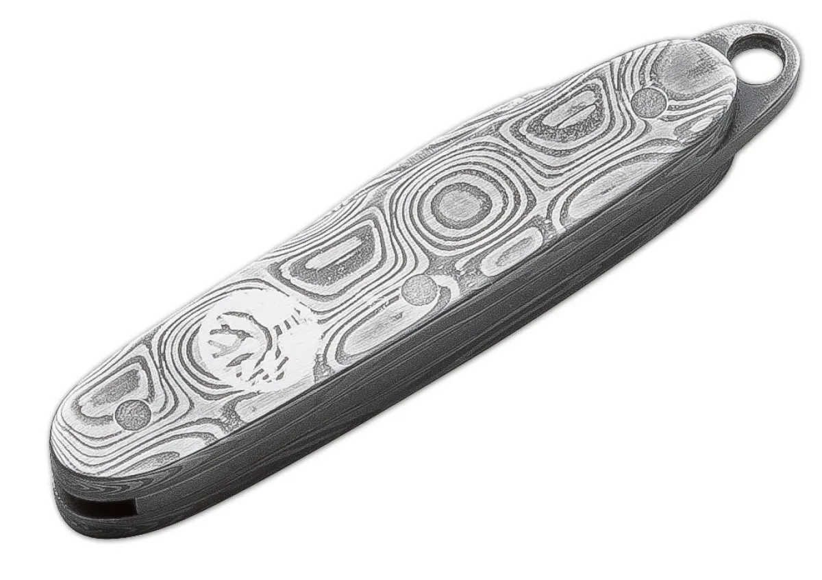 Damascus Meets Bonsai! Just Like The Famous Japanese Miniature Trees That Grow Into Small Works Of Art After Years Of Elaborate And Meticulous Care, Our Mini Damascus Is A Strongly Reduced, But Yet Entirely Original And Artful Miniature Version Of A Damascus Pocket Knife. Blade And Tang Are Entirely Made Of Stainless Damascus, So The Term “Jewel” Can Be Taken Literally. The Folder With A Thickness Of 5.6 Mm, It Can Even Be Carried As A Necklace.