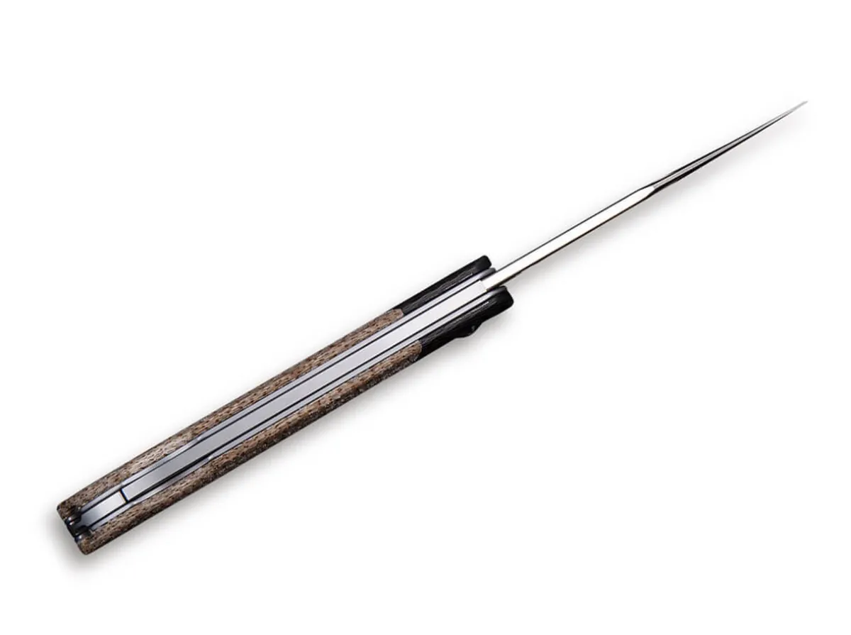The Rustic Gent C914C Is We Knife’S Continuation Of The Civivi Line, A Classic Edc Compatible Backlock Pocket Knife Made To Fulfill The Usual High Production Standards And Offered At A Very Attractive Price Point. The Stainless Steel Liner Sits In Brown Textured Micarta Scales, Which Are Paired With Carbon Fiber Bolsters. The D2 Blade Offering Good Edge Retention Opens Manually With A Nail Nick And Locks With A Backlock. Includes Leather Sheath With Clip.