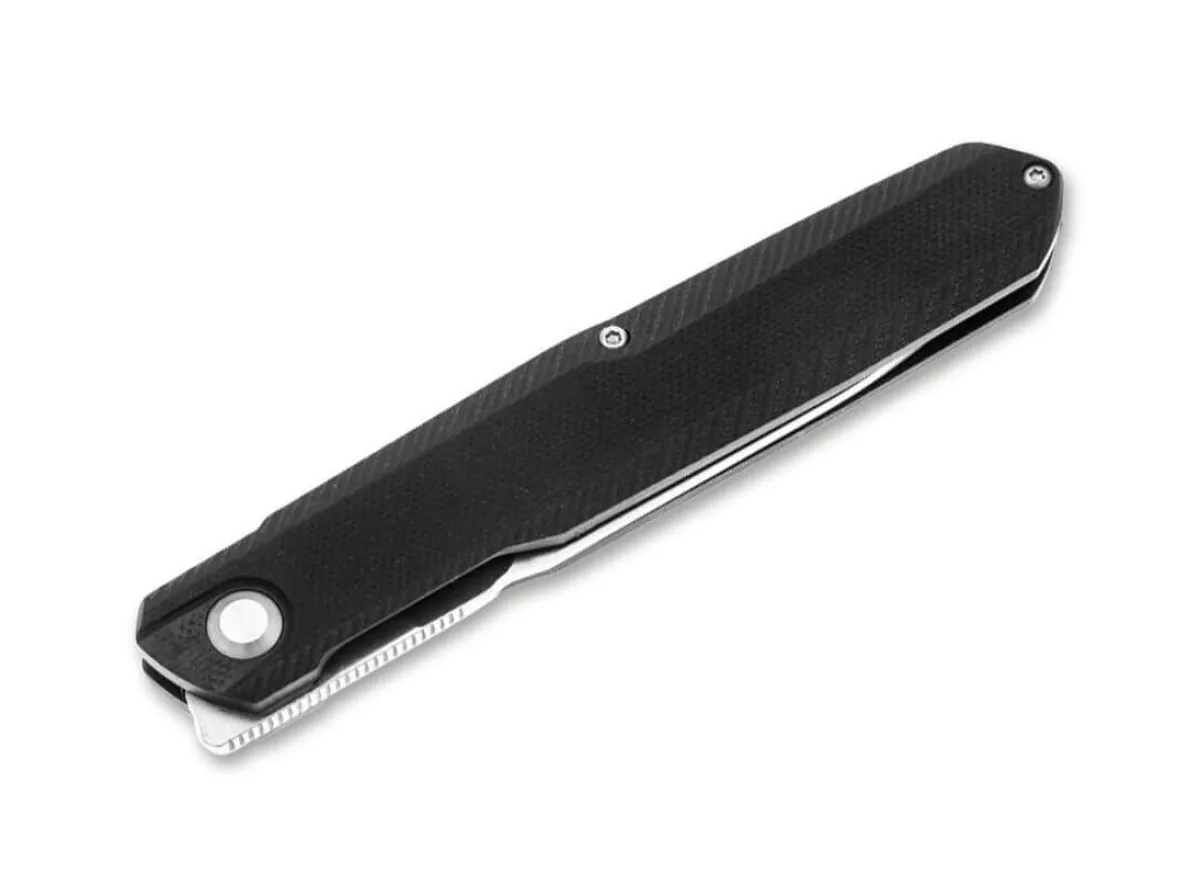 The G5 Metamorph From Real Steel Is A True Flagship Gentleman’S Pocket Knife. Ostap El’S Sense Of Sublime Design, Combined With Real Steel‘S Constant Pursuit Of True Innovation, Resulted In This Unique Knife. The Metamorph Features A Slim 14C28N Blade With An Additional Bevel On The Back Of The Blade For Dynamic Lines. It Is Opened By A Compact Front Flipper And Is Also Equipped With Ball Bearings For A Smooth Opening. The Linerlock Is Completely Concealed In The Frame Of The Handle, The Scales Of Which Are Made Of Non-Slip Black G10. The Top Of The Blade Has A Milled Contact Surface For Maximum Control And Effectiveness When Cutting. With A Practical Deep-Carry Clip (Tip-Up/R).