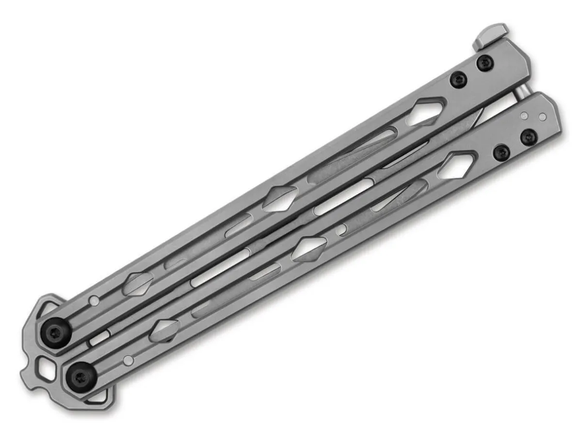 Butterfly-Messer Geubt Zu Schwingen, Motiviert Und Fordert Die Koordinativen Fahigkeiten, Kann Aber Durchaus Auch Einschuchternd Sein. Hier Kommt Der Lucha Trainer Ins Spiel. Die Abgerundete Spitze Und Die Stumpfe Schneide Der Klinge Aus 14C28N Verhindern, Dass Man Sich Beim Ausfuhren Von Tricks Versehentlich Verletzt. Die Trainer-Version Wurde So Konzipiert, Dass Sie Dem Original Lucha So Nahe Wie Moglich Kommt. Zum Beispiel Verjungt Sich Die Klinge, So Dass Die Spitze Mehr Gewicht Hat, Um Gleichmasig Zu Pendeln. Der Lucha Trainer Verfugt Uber Zwei Kugelgelagerte Kvt-Drehpunkte Fur Eine Besonders Einfache Bedienung. Der Edelstahlgriff Des Trainingsmessers Ist Abgerundet, Damit Er Muhelos In Der Hand Rollt. Sogar Der Riegel Ist Abgerundet, Damit Er Beim Umdrehen Nicht Hangen Bleibt. Der Riegel Verfugt Uber Einen Positiven Anschlag, So Dass Er Nie Die Klinge Beruhrt. Und Als Asthetische Note Hat Das Lucha Trainer Rautenformige Locher In Der Klinge, Die Das Ubrige Design Unterstreichen. Ob Fur Anfanger Oder Profis – Der Lucha Trainer Ist Das Ideale Ubungsmesser.