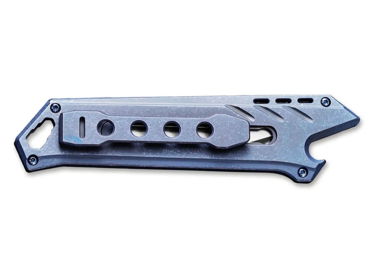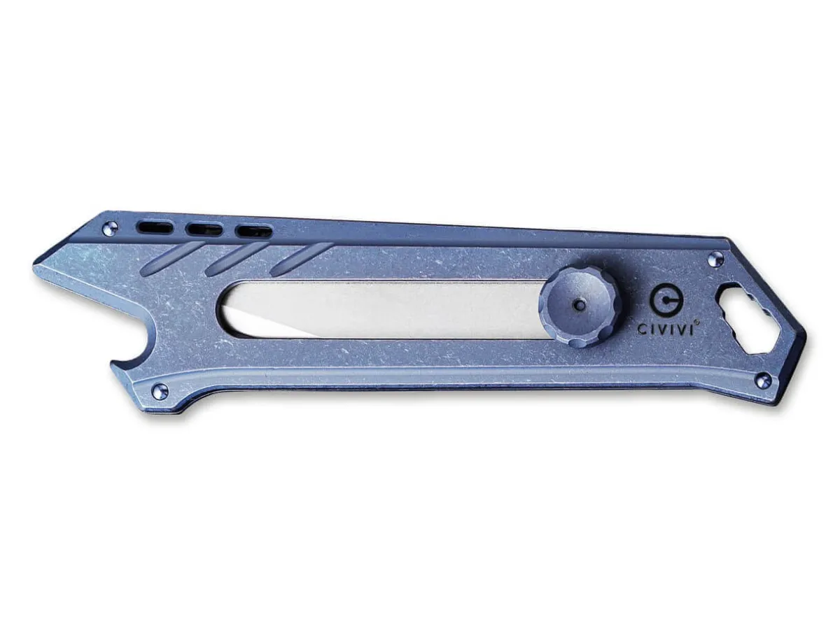 The Civivi Mandate Is A Compact Knife With An Extendable And Replaceable Blade. The Blue Handle Is Made Of Milled Titanium, And Has An Easy, One-Hand Action. When Closed, The Handy Pocket Knife Can Also Be Used As A Bottle Opener. The Lanyard Hole Also Functions As A Practical Bit Holder, Which Is Compatible With Different Sizes. The Knife Comes With Two 9Cr18Mov Blades And One Damascus Steel Blade. With Clip (Tip-Down).