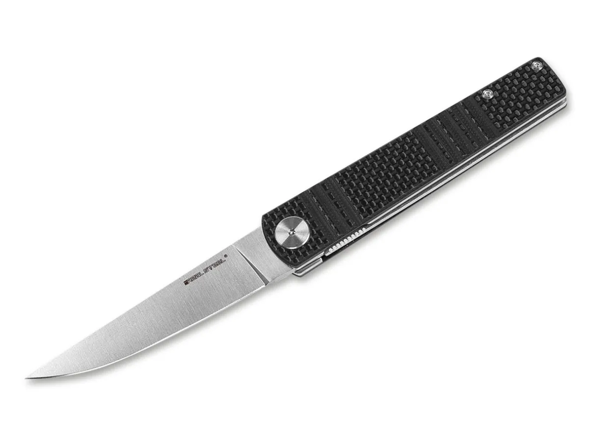 The First Cooperation Of Chad Los Banos And Real Steel Gave Us The Ippon, A Very Straightforward And Clearly Japanese-Inspired Knife. The Striking Front Flipper Ensures Fast And Comfortable Opening Of The Ball-Bearing Blade, Which Is Made Of N690. The Milled Handle Scales Made Of Carbon Fiber Lie Securely In The Hand. With Removable Deep-Carry Clip (Tip-Up/R) And Liner Lock.