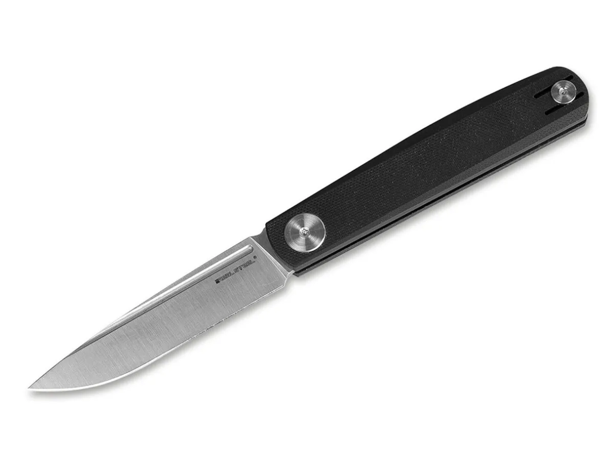 The Real Steel G Slip Is A Modern Slipjoint Pocketknife With Sleek Lines And High Wearability. The Knife Is Equipped With A Black Handle Made Of G10 And A Blade Made Of Vg-10, Which Opens Via Nail Nick. With A Detachable Deep-Carry Clip (Tip-Up).