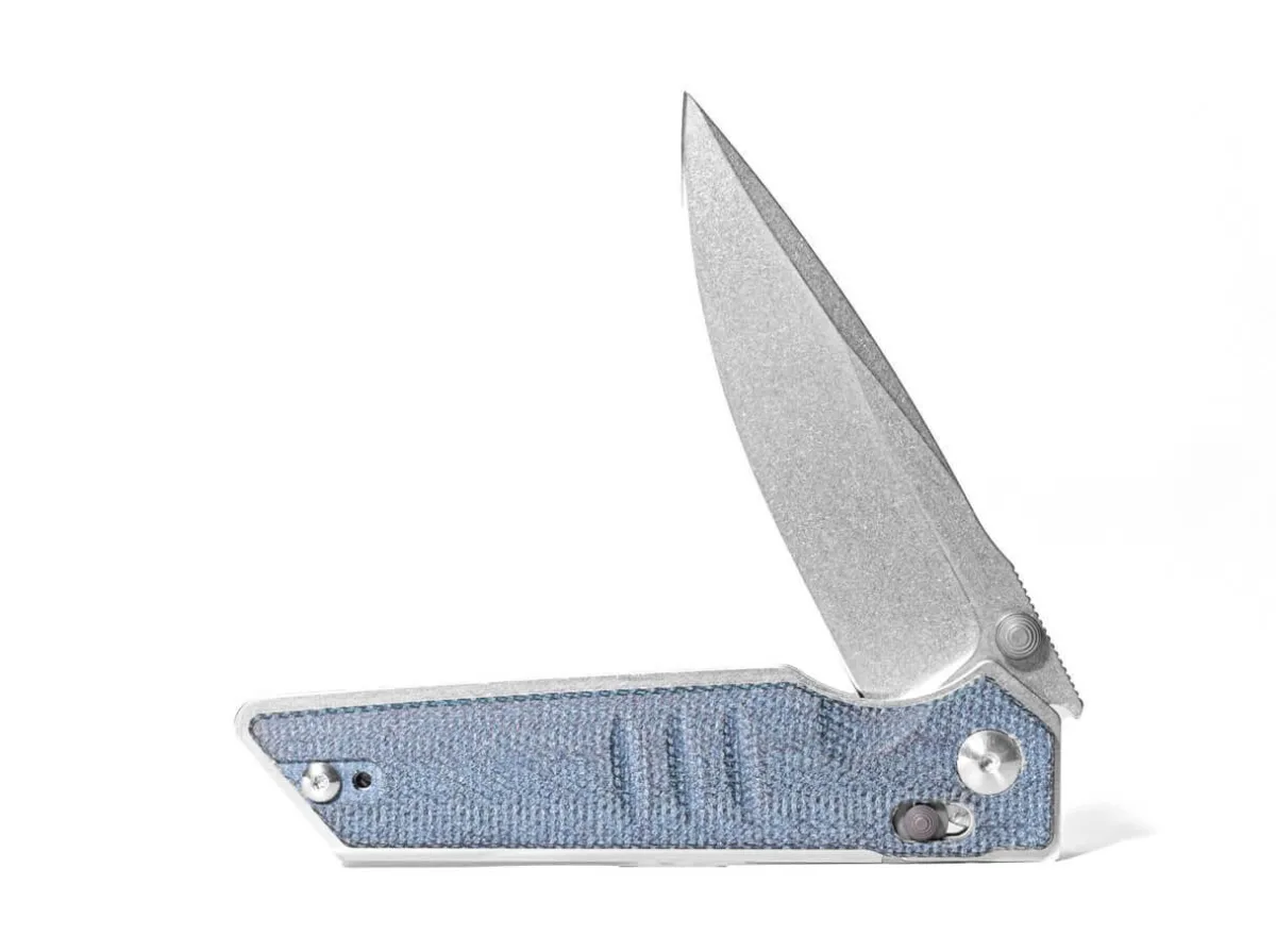 Jakub Wieczorkiewicz Is Committed To Clear Edges In The Sacra And Equips The Edc Knife With Thumb Pin For Opening And Practical Slide-Lock Mechanism For Unlocking The Knife. The Massive Droppoint Blade With Pronounced Ricasso Is Made Of High-Strength Bohler K110 And Cuts Cardboard Boxes, Ropes Or Packaging With Ease. The Handle Scales Made Of Jeans-Blue Micarta Are Screwed Onto Stainless Steel Liners And Convey Maximum Stability. With Convertible Tip-Up Clip.