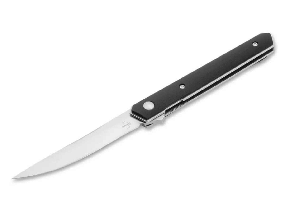 The Slim Design And The Exclusive Choice Of Materials Make The Boker Plus Kwaiken Air A Classy Crossover Between A Gentleman’S Folder And A Tactical Knife. To Make This Bridging Even Easier, The Kwaiken Air Mini Offers The Same Outstanding Qualities As Its Big Brother With Significantly Reduced And Thus More Pocket-Friendly Dimensions. With A Straightforward And Practical Shape, The Modern Pocket Knife Has Become A True Icon. The Clean Lines And Slim Design Have Been Further Optimised For Uncompromising Weight Reduction In The Lightweight Version, Although The Knife Still Holds The Entire Blade When Closed. The Flipper Ensures Intuitive Operation And Additional Safety, While The Linerlock Securely Locks The Ball-Bearing Blade Made Of Vg-10 With An Impressive Hairline Finish. The Lightness Of The Gentleman Folder Is Underlined By The Handle Scales Made Of Resistant G10, Which Give The Knife A Tactical Feel. Supplied With A Lanyard Hole, A Removable Deep-Carry Clip (Tip-Up/R) And A High-Quality Nylon Pouch For Storage.