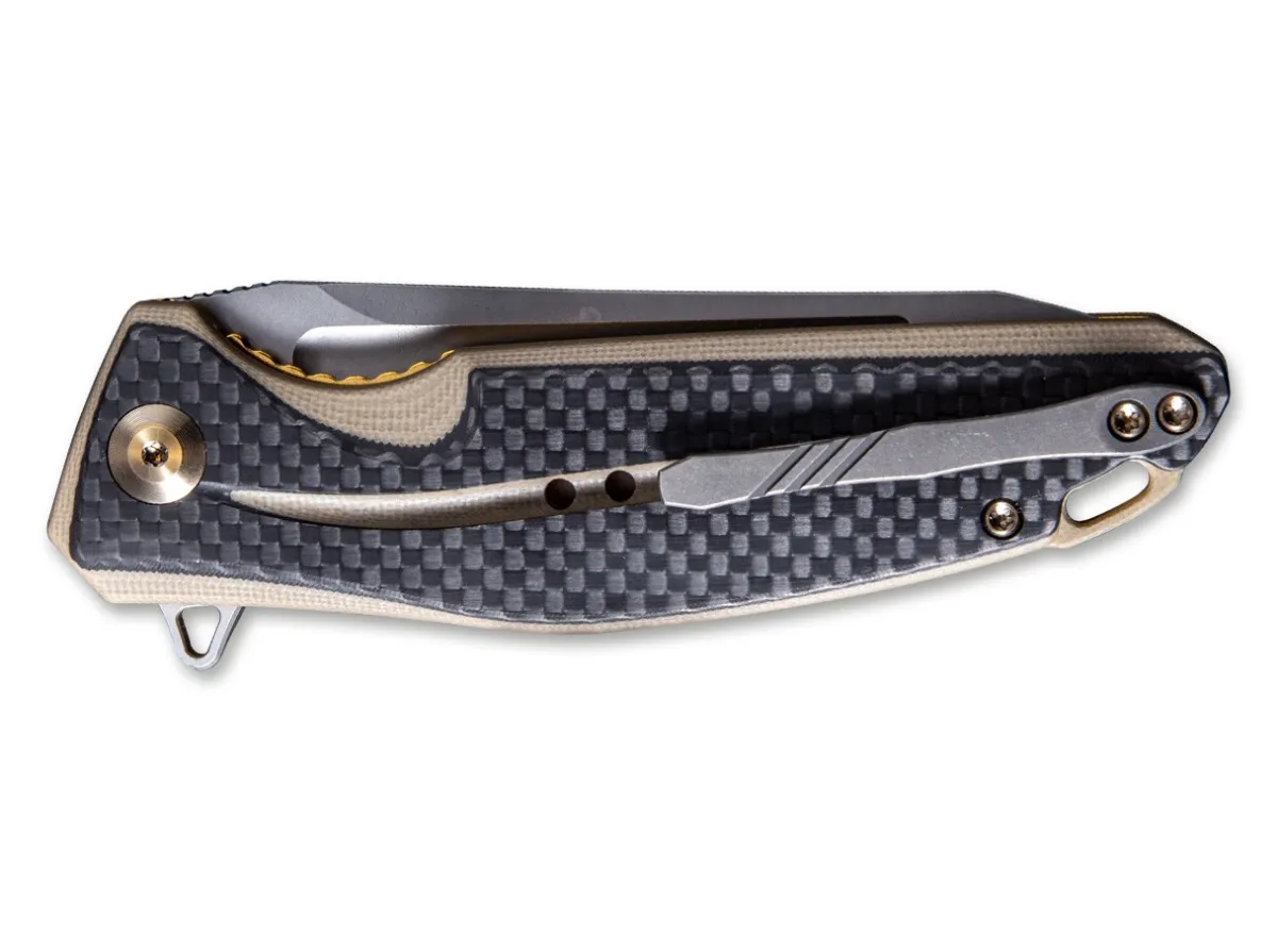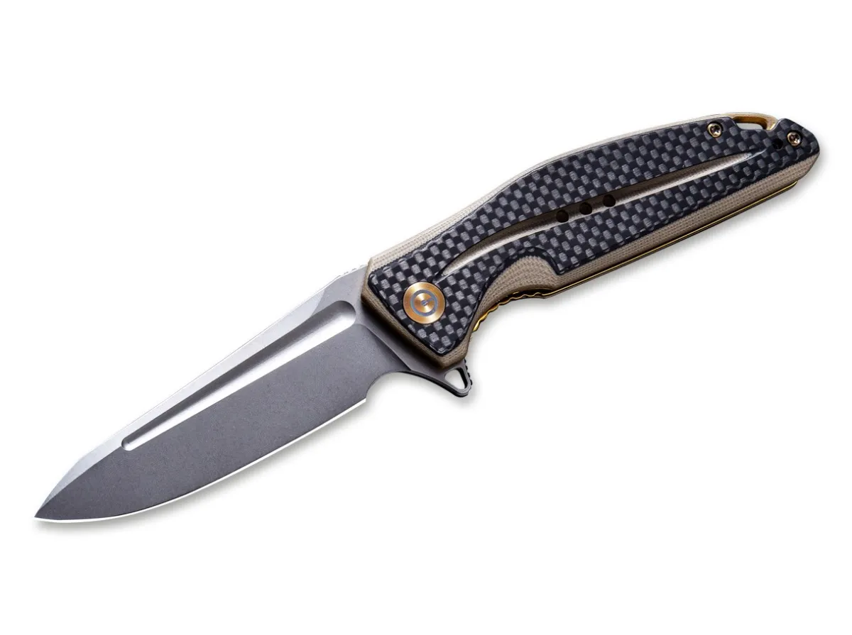 The Statera Is We Knife’S Continuation Of Their New Civivi Line, An Everyday Folder Made To Fulfill The Usual High Production Standards And Offered At A Very Attractive Price Point. The Stainless Steel Linerlock Sits In The G10 Scales, Which Have Been Enhanced By A Carbon Fiber Overlay. The Blade On Ball Bearings Consists Of D2. The Repositionable Solid Milled Clip (Tip-Up/L-R) Is Made From Titanium, As Are The Screws And Pivot Cap.
