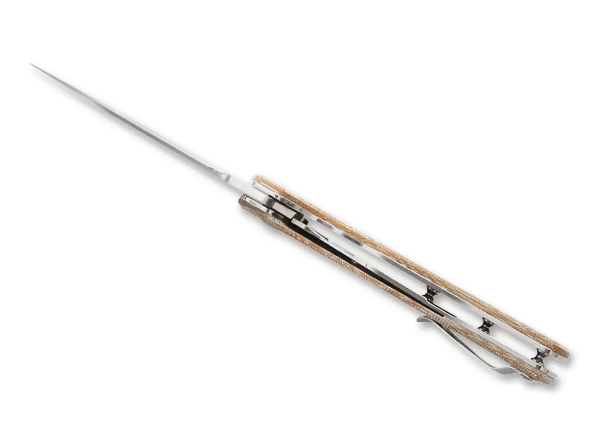 The Xl Version Of The Sheepdog Is Equipped With A Bulky Sheepfoot Blade Made Of 154Cm. The Linerlock Locks The Blade Securely And Reliably. The Brown Micarta Handle Has A Blue Anodised Ring Around The Blade Axle Screw. With A Clip (Tip-Up/R).
