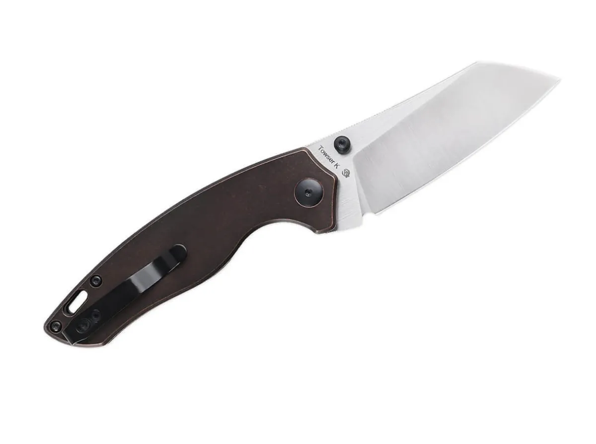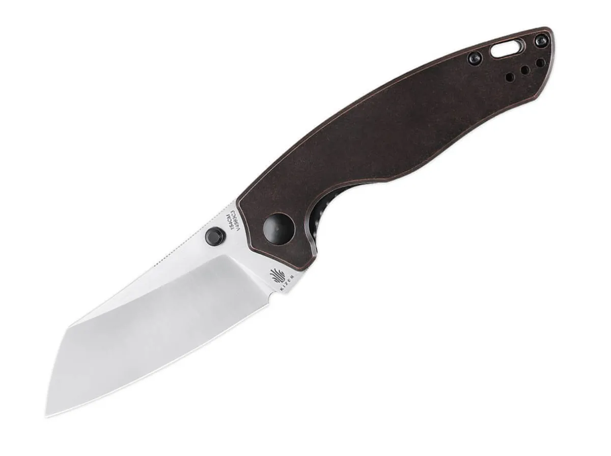 The Similarity To The Popular Kizer Sheepdog Series Is Unmistakable, So That Desiger Azo Also Transfers The Essential Elements To The Towser K. The 154Cm Ball Bearing Blade Is Opened By A Thumb Pin, While The Liner Lock Reliably Locks It In Place. The Unusual Blade Shape Captivates Every Knife Fan And Represents A Mixture Of Cleaver And Sheepfoot. A Unique Patina Develops On The Copper Handle Over Time, Making Each Knife One Of A Kind. The Tip-Up Clip Allows The Knife To Be Carried On Both Sides.