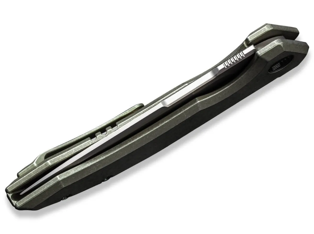 The We Knife Quixotic Is The Idealist Among Edc Knives. As Proof, The Framelock Folder Cites The Powder Metallurgy Blade Made Of Cpm-20Cv As Well As The Green Handle Made Of Titanium, Which Make Everyday Cutting Tasks A Breeze. The Striking Ricasso As Well As The Grooves On The Back Of The Blade Set Visual Accents, While The Clip (Tip-Up/R) As Well As The Lanyard Loop Round Off The Knife Functionally.