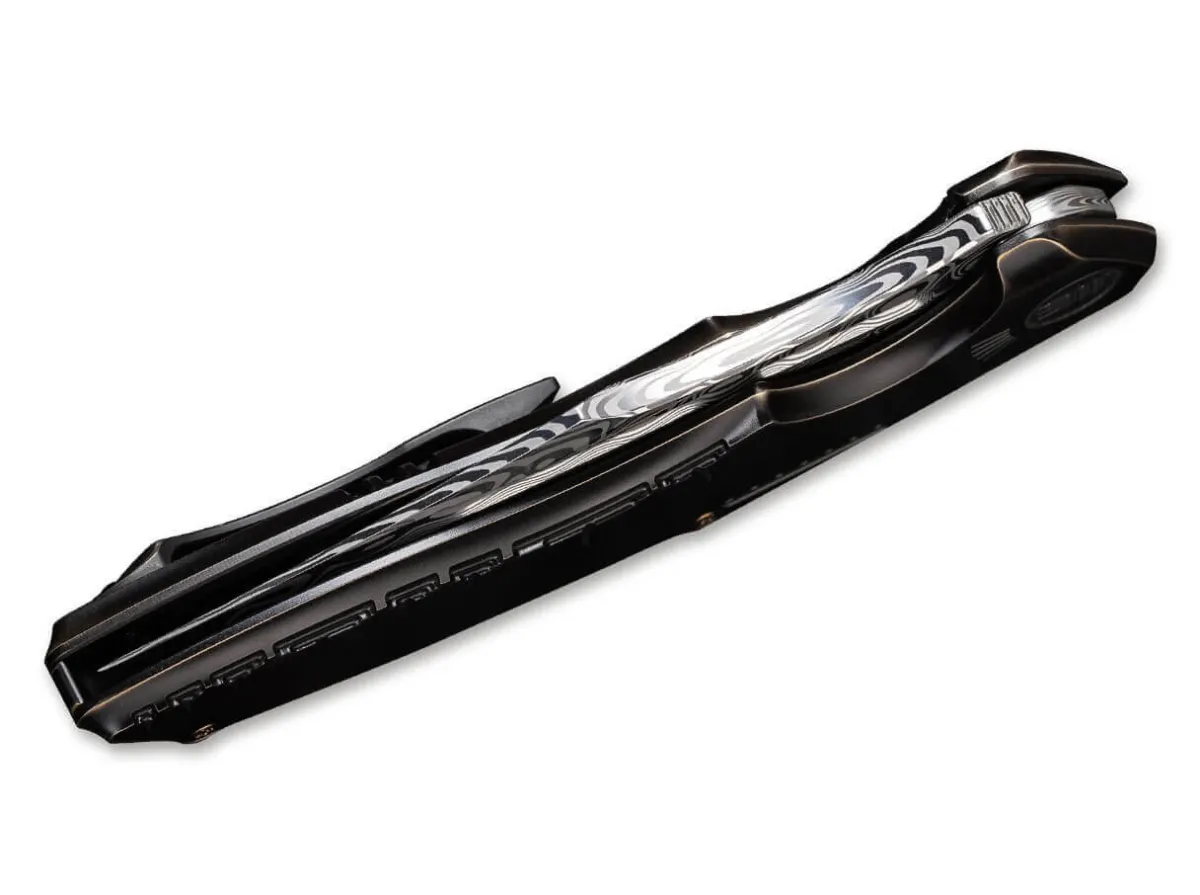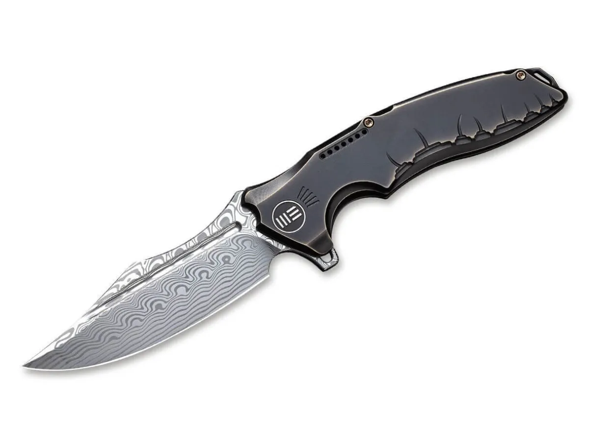 The Chimera Damascus Titan Bronze From We Knife Combines Custom Quality With An Absolutely Unique Appearance. The Clip-Point Blade Made Of Damascus Forms An Elegant Transition Into The Bronze-Coloured Handle Made Of Titanium. Supplied With A Clip (Tip-Up/R).