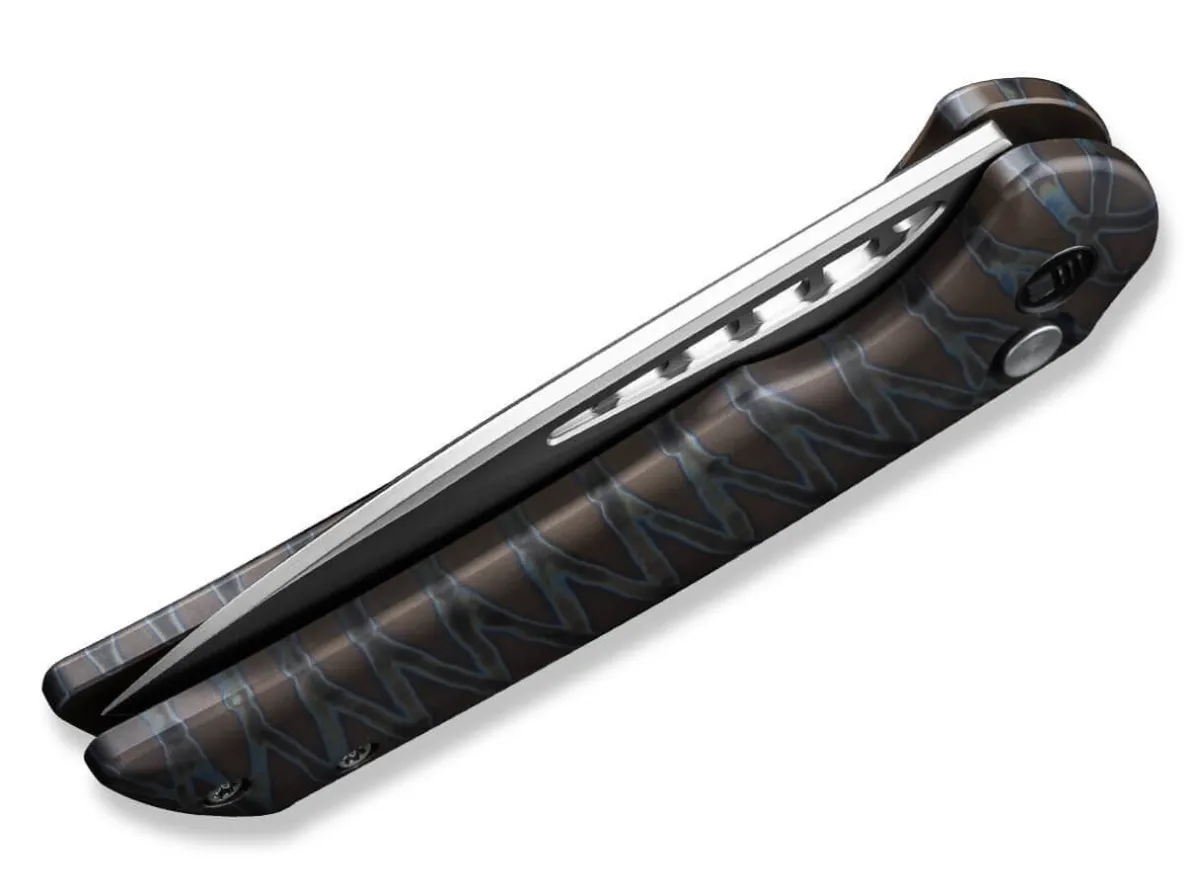 The Small Variant Of The Popular We Knife Malice Stands Out Especially Because Of The Distinctive Openings In The Drop Point Blade Made Of Powder Metallurgy Cpm-20Cv. Thanks To The Ceramic Ball Bearings, The Knife Opens Silky Smooth With The Help Of The Flipper And Is Reliably Secured By The Button Lock. The Dazzling Handle In The Pattern Tiger Stripes And The Tip-Up (R) Clip Are Made Of High-Strength Titanium And Ensure Perfect Handling During And After Use Of The Knife.