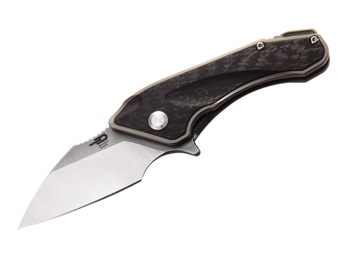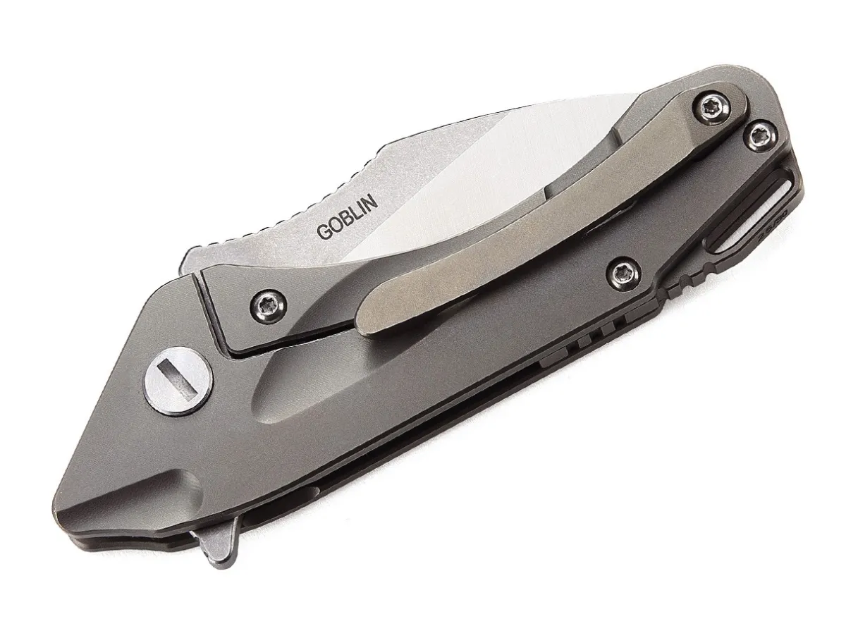 The Bestech Goblin Is A Compact Utility Knife Suitable For Tough Cutting Tasks.The 3D Milled Handle Made Of Sturdy Titanium Has A Large Carbon Insert On The Front. The Back Contains The Sturdy Framelock. The Short Wharncliffe Blade Made Of Powder-Metallurgical Cpm-S-35Vn Opens Via Flipper.With A Lanyard Hole And Clip (Tip-Up).