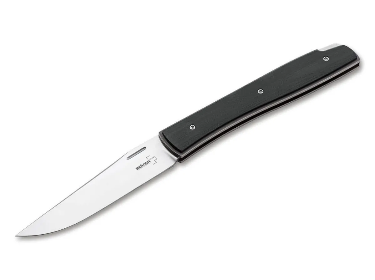 The Boker Plus Urban Trapper, Designed By Brad Zinker, Is One Of The Thinnest Profile Pocket Knives In Our Range And Is Now Available With An Additional Locking Mechanism Thanks To The New Patented Wire Bracket Backlock. Thanks To The Space-Saving Wire Bracket, No Additional Top Spring Is Required, Giving The Blade Significantly More Space In The Handle. The Blade Made Of Vg-10 Has A Fine Hairline Finish And Is Equipped With A Nail Nick. The Structured Handle Scales Made Of Black G10 Always Lie Securely In The Hand. With A Clip (Tip-Up) And A High-Quality Nylon Case For Storage.