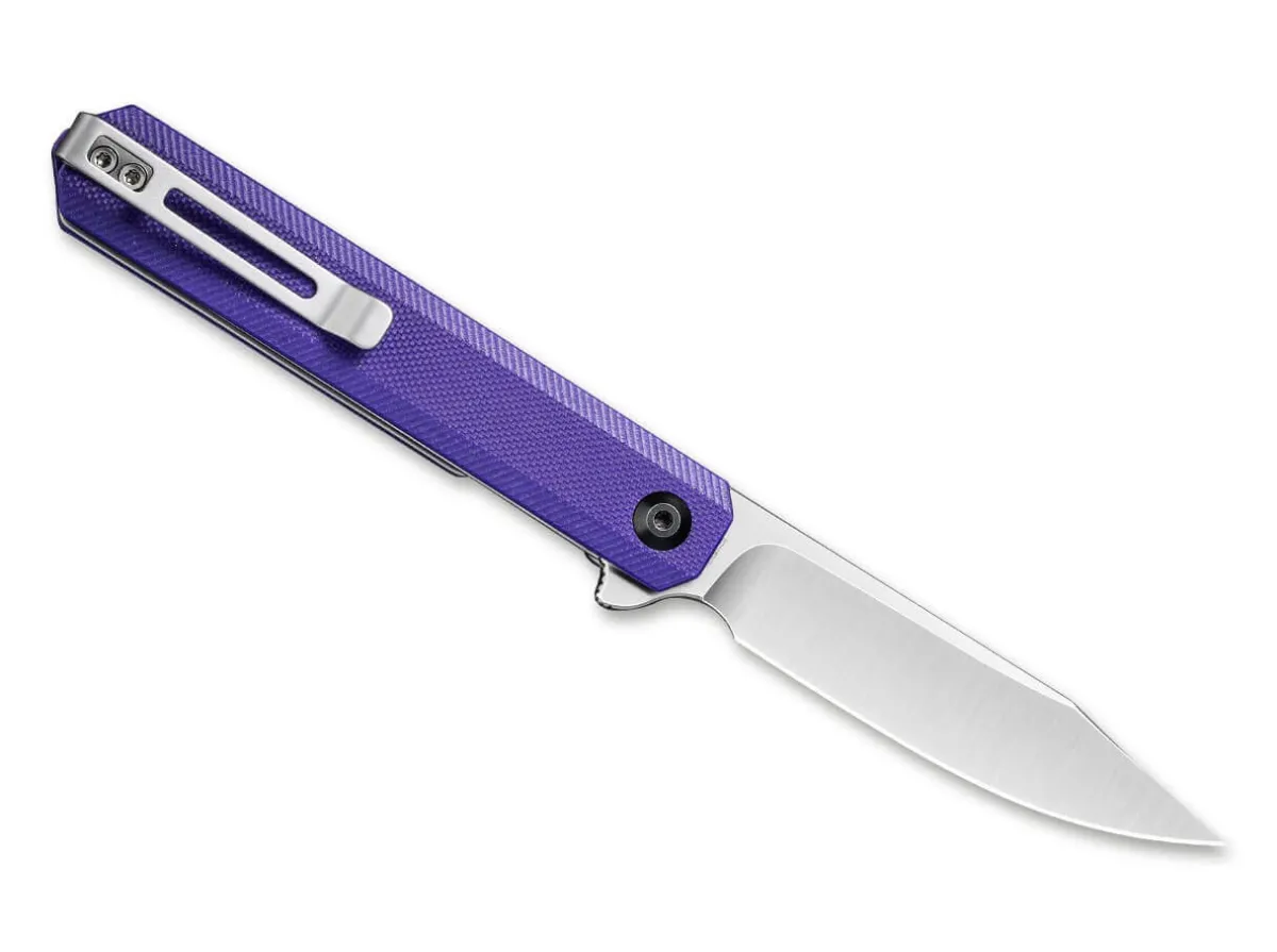 The Civivi Chronic Has A Very Slim Design, With A Slender, Hollow-Ground Blade Made Of 9Cr18Mov. The Satin-Finished Clippoint Blade Is Opened By A Flipper And Enables Fast Work. The Stainless Steel Linerlock Ensures The Blade Is Securely Locked In Place. The Plain Handle Made Of Purple G10 Completes The Look Of The Knife. Supplied With A Lanyard Hole And A Detachable Clip (Tip-Up).