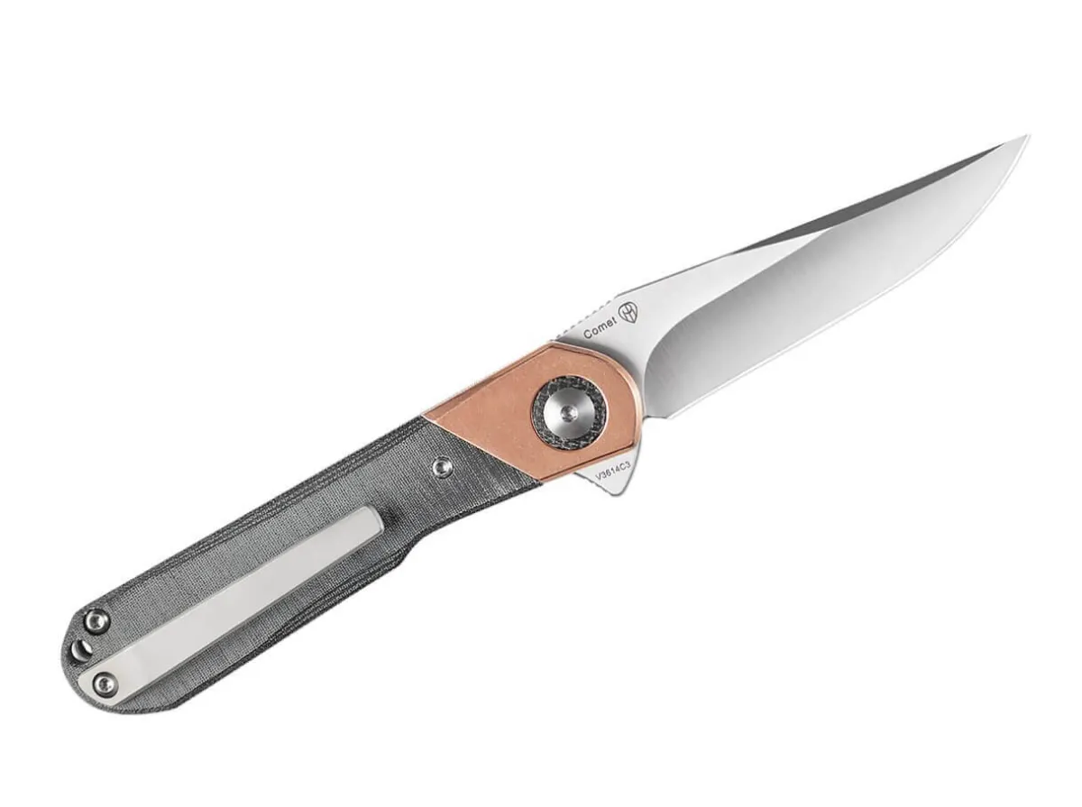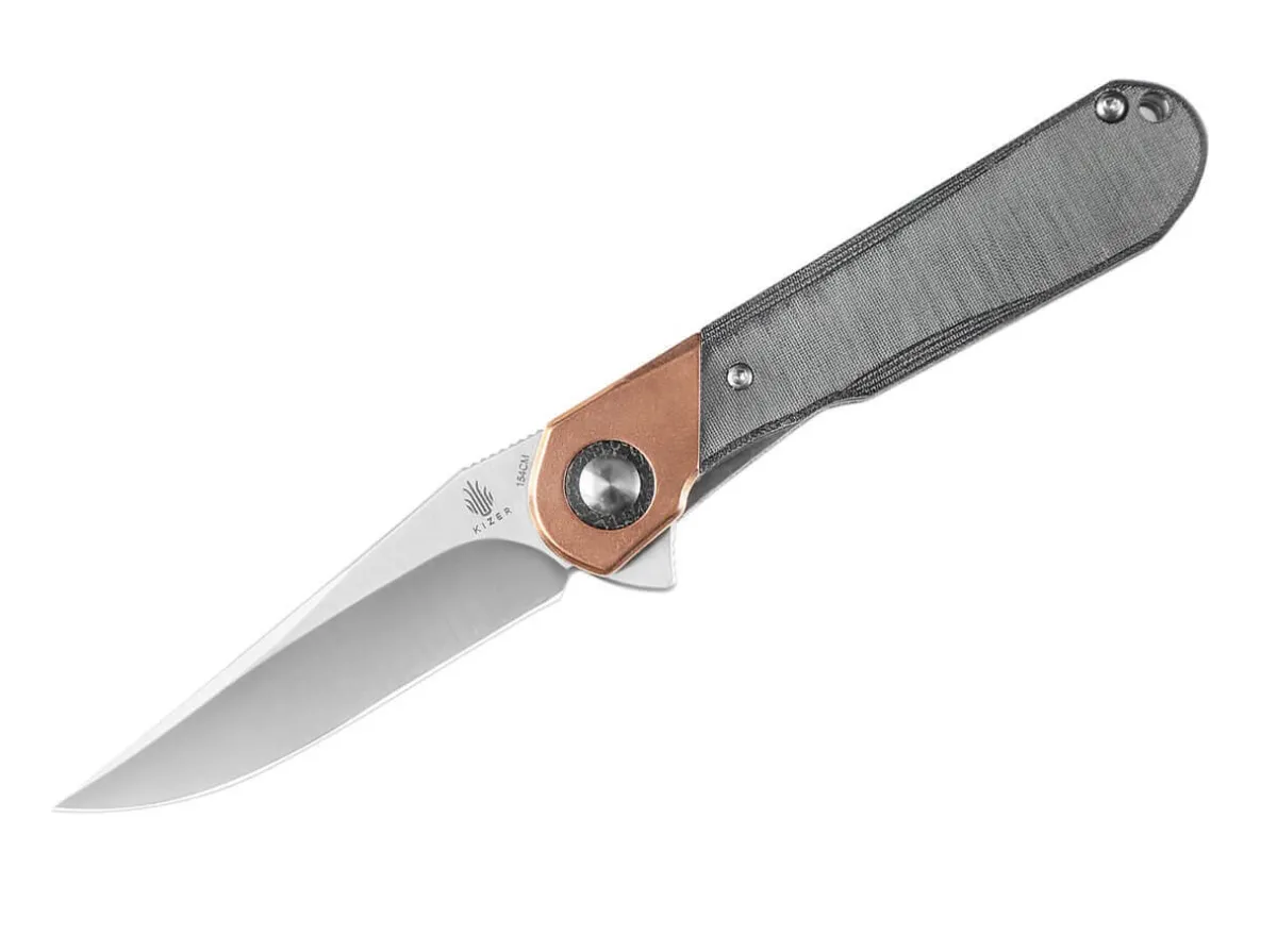 Created In The Vastness Of Space, The Kizer Comet Is Considered A Stunning Discovery In The Interstellar Knife Universe. A Mixture Of Copper And Black Micarta Provides The Unique Composition Of The Bolster And Handle, While The Blade Of Cosmic 154Cm Opens Weightlessly By Flipper. The Solid Liner Lock Locks The Knife Securely, Clip (Tip-Up/R) And Lanyard Eyelet Provide The Appropriate Attachment Without Losing Grip On The Ground.