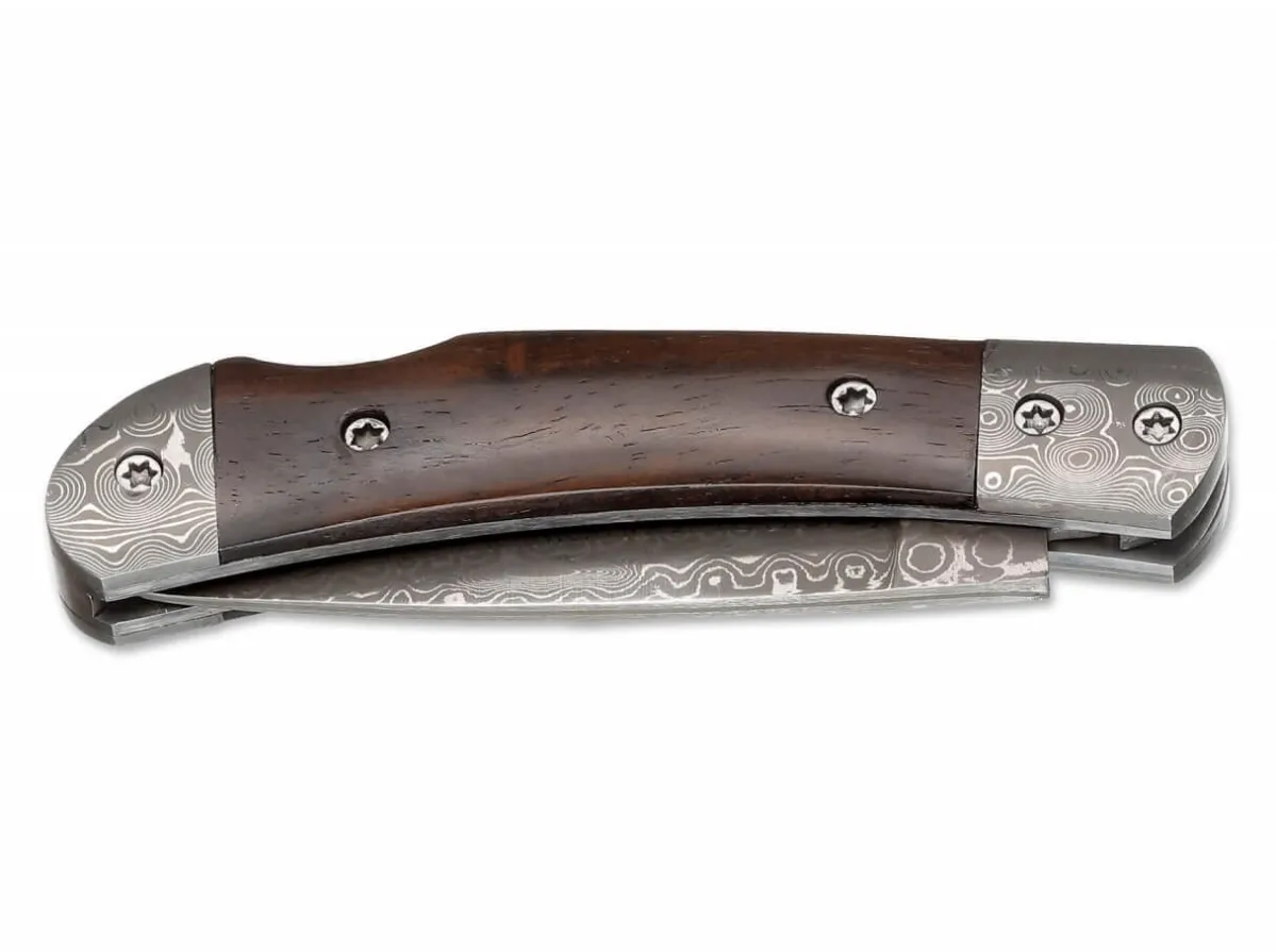 A High-Quality And Elegant Knife. The Blade And Bolsters Consist Of 37 Layers Of Damascus Steel. The Handle Is Made Of Dark, Grainy Ebony, Which Goes Great With The Exquisite Look Of This Knife. The Blade Has A Nail Pull And A Back Lock. A Sophisticated Knife Which Will Excite Even You In Everyday Use With Its Reliability.