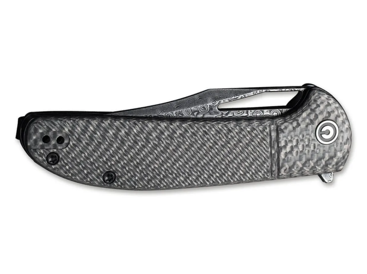 The Practical Civivi Ortis Damascus Carbon Is Designed For Everyday Use With A Robust Blade Made Of Fine Damascus And A Non-Slip Handle Made Of Carbon Fibre. The Knife Opens With A Thumb Hole And Unlocks With A Secure Linerlock. With A Convertible Clip (Tip-Up/ L+R).