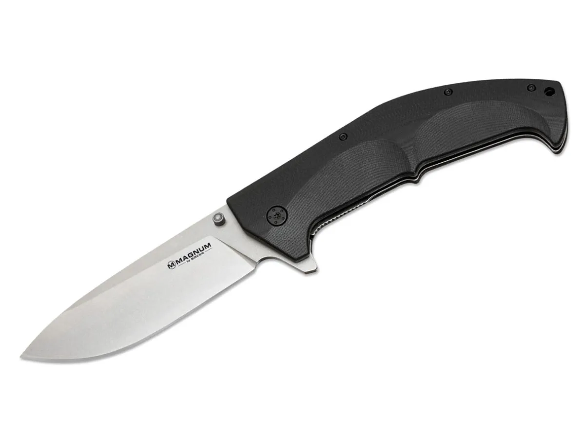 This Is One Of The Largest And Most Imposing Knives In The Magnum Line. Just Its Dimensions Alone Are Impressive. The Strong Blade Made From 440A Steel Opens With One Hand Per Flipper Or Thumb Pin And Locks Per Liner Lock. Stainless Steel Plates, Scales And Spacer Made Of G-10. The Clip And Lanyard Hole Make It Easy To Transport And Prevent Losing The Knife.