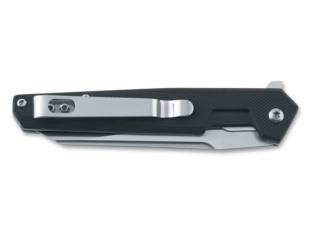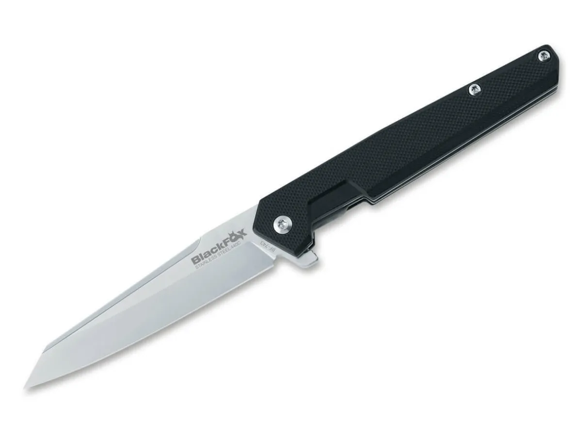 The Sleek Blackfox Jimson Features A Satinized 440C Wharncliffe Blade, Which Opens With A Flipper.Underneath The Simple Handle Scales Made Of Black G10 Is A Sturdy Linerlock That Secures The Blade. With A Detachable Clip (Tip-Up).