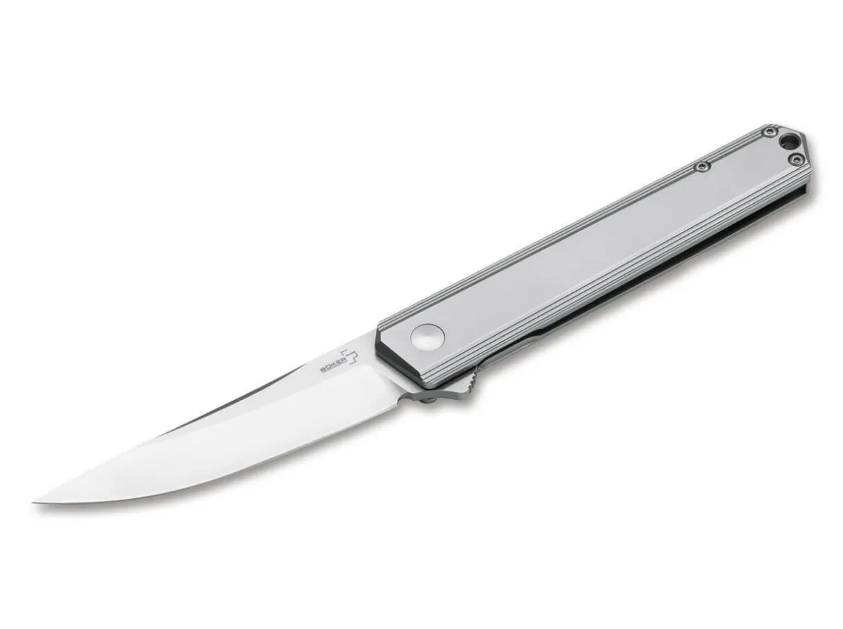 Die Ungebrochene Popularitat Des Kwaiken Flippers Von Lucas Burnley Hat Uns Bereits Eine Vielzahl Von Varianten Beschert. Ganz Oben Auf Der Wunschliste Unserer Kunden Stand Eine Besonders Schlanke Version, Die Bei Gleichbleibender Grose Noch Mehr Tragekomfort Bietet. So Haben Wir Uns Zusammen Mit Lucas Burnley An Die Verwirklichung Des Boker Plus Kwaiken Framelock Gemacht. Durch Den Verzicht Auf Eine Separate Platine Konnten Wir Die Griffdicke Des Kwaiken Hier Noch Einmal Deutlich Reduzieren. Durch Die Elegante Facettenfrasung Der Edelstahlgriffschalen Wirkt Das Messer Dennoch Nie Kantig In Der Hand, Sondern Begeistert Mit Einer Ausgezeichneten Haptik. Die Kugelgelagerte Klinge Wird Aus D2 Gefertigt Und Tragt Ein Feines Satin-Finish. Der Sanft Mattierte Griff Tragt Einen Abnehmbaren Clip (Tip-Up/R).