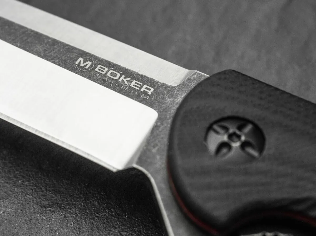 The Magnum Mobius Is A Full-Size Tactical Folder With An Elegant Look That Is Unusual For This Knife Class. The Surface Of The G10 Handle Scales Has A Subtle But Effective Texture. Two Dark Red Fiber Layers Between The Steel Plates And The Black Scales Add Visual Appeal. The Linerlock Is Integrated Into The Handle, Unobtrusive But Easy To Operate. The 440A Stainless Steel Blade Has A Flipper And An Elaborate Two-Tone Finish. With A Sturdy Generously Sized Clip.