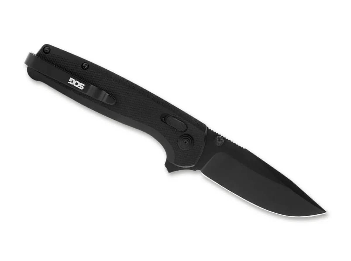 This Version Of The Familiar Sog Terminus Xr Has Black Handle Scales Made From Lightweight G10. The Blade Opens With A Flipper Or Thumb Stud And Locks With The Reliable Xr Lock, Which Is Easy To Operate Via The Side Slider In The Handle. The Blade, Which Has Superb Edge Retention, Is Made Of D2 And Is Coated In Black. With Clip (Tip-Up).