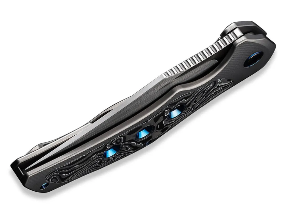 The We Knife Magnetron Exerts An Irresistible Attraction On The Knife World. The Reason For This Is The Contrast Between The Powder-Metallurgical Cpm-20Cv Blade And The Gray Titanium Handle, Which Has Three Openings And A Shimmering Foil Inlay With An Aluminum-Carbon Look. The Ball-Bearing Clippoint Blade Is Opened Silky-Smooth Via Flipper, Whereas The Frame Lock Reliably Secures The Knife. With Tip-Up Clip(R).