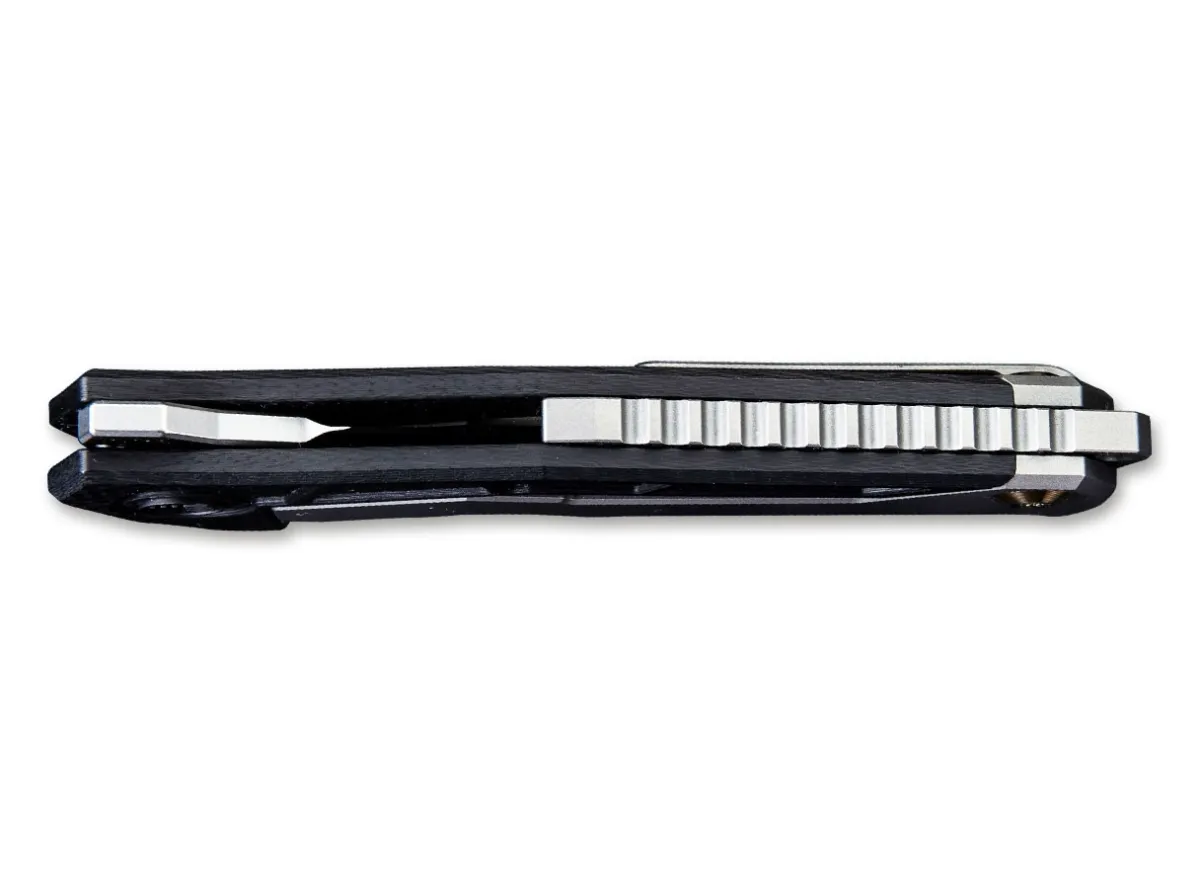 The We Knife Sugga 915A Is A Robust Knife From Designer Mikkel Willumsen. His Design Style Is Clearly Recognizable. The Large Format, Dramatic Blade Shape And Angular Handle Are Elements Typical Of Willumsen’S Style. The Angular Shape Gives The Knife An Industrial Look, Which Is Reinforced By The Milled Out Sections In The Handle That Are Reminiscent Of A Steel Construction.Despite Its Angular Shape, The Knife Feels Very Comfortable In The Hand. The Combination Of Carbon Fiber And Titanium In The Handle Is A Real Eye-Catcher. Because A Large Part Of The Construction Consists Of Carbon Fiber, The Sugga Is Surprisingly Lightweight For Its Size. The Blade Is Made From S35Vn, A Super-Strong Type Of Steel That Is Easy To Maintain. It Can Be Opened Quickly And Easily With The Flipper And Secured With The Sturdy Framelock. A Beautifully Milled Titanium Pocket Clip (Tip/Up) With A Ceramic Bullet Completes The Picture.