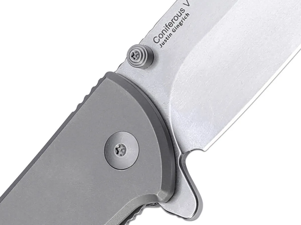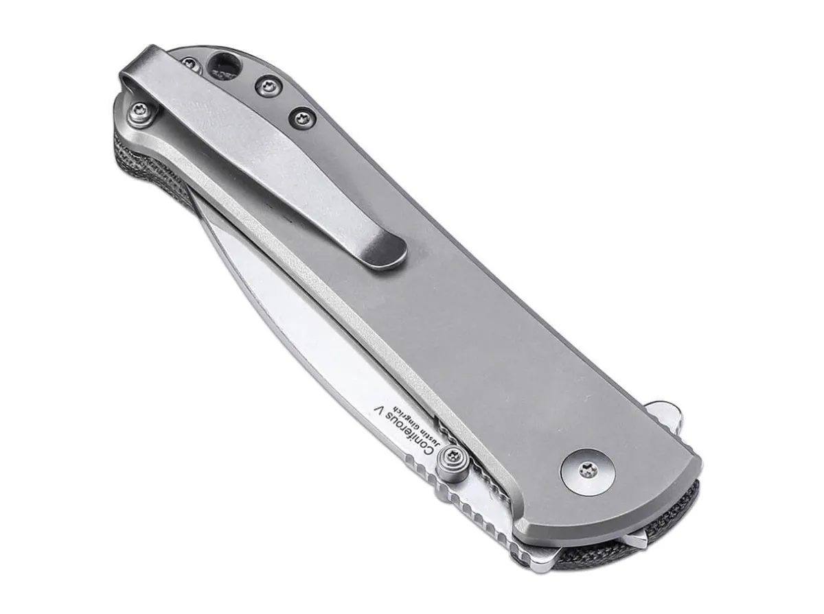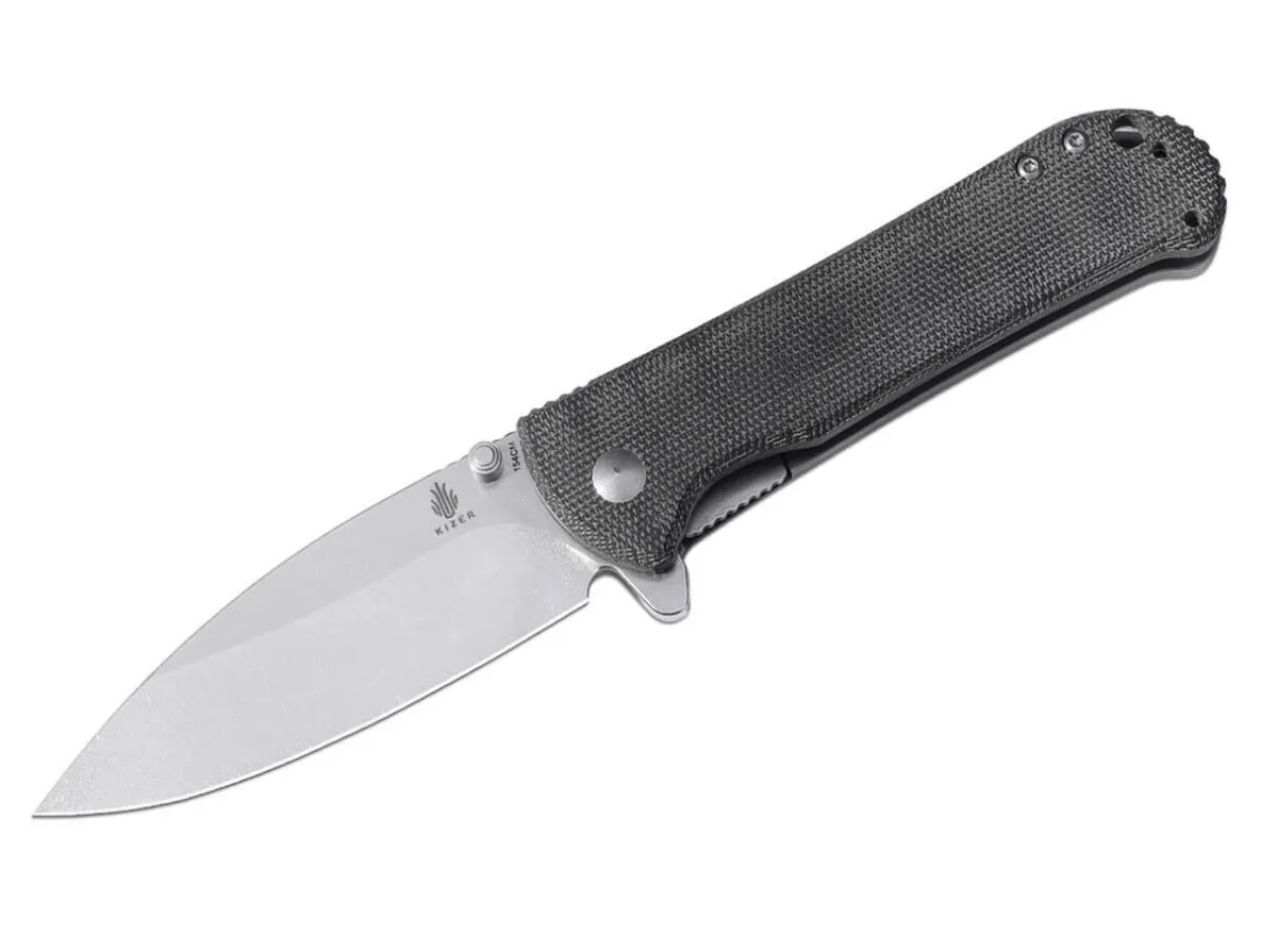 A Conifer As A Luminary: The Kizer Coniferous V Does Not Needle, But Offers A Thoroughly Pointed And Sharp 154Cm Blade For Everyday Cutting Tasks. A Choice Of Flipper Or Thumb Stud Is Available For Opening, While The Sturdy Liner Lock Keeps The Pocket Knife Properly Locked. The Visual Highlight Is The Hybrid Handle, Whose Front Handle Shell Is Made Of Black Micarta And The Rear Of Noble Titanium. The Stonewash Finish And The Convertible Deep-Carry Clip (Tip-Up) Round Off The Features.