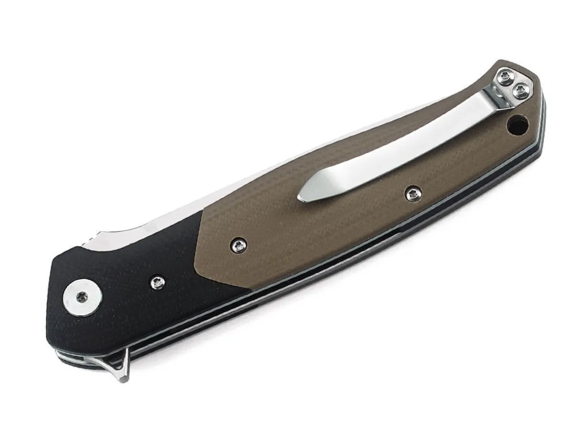 The Slim Bestech Swordfish Features A Two-Tone G10 Handle In Black And Beige. The Robust D2 Blade Has A Pronounced Ricasso And Opens With A Flipper. A Sturdy Linerlock Secures The Blade. With A Lanyard Hole And Clip (Tip-Up).