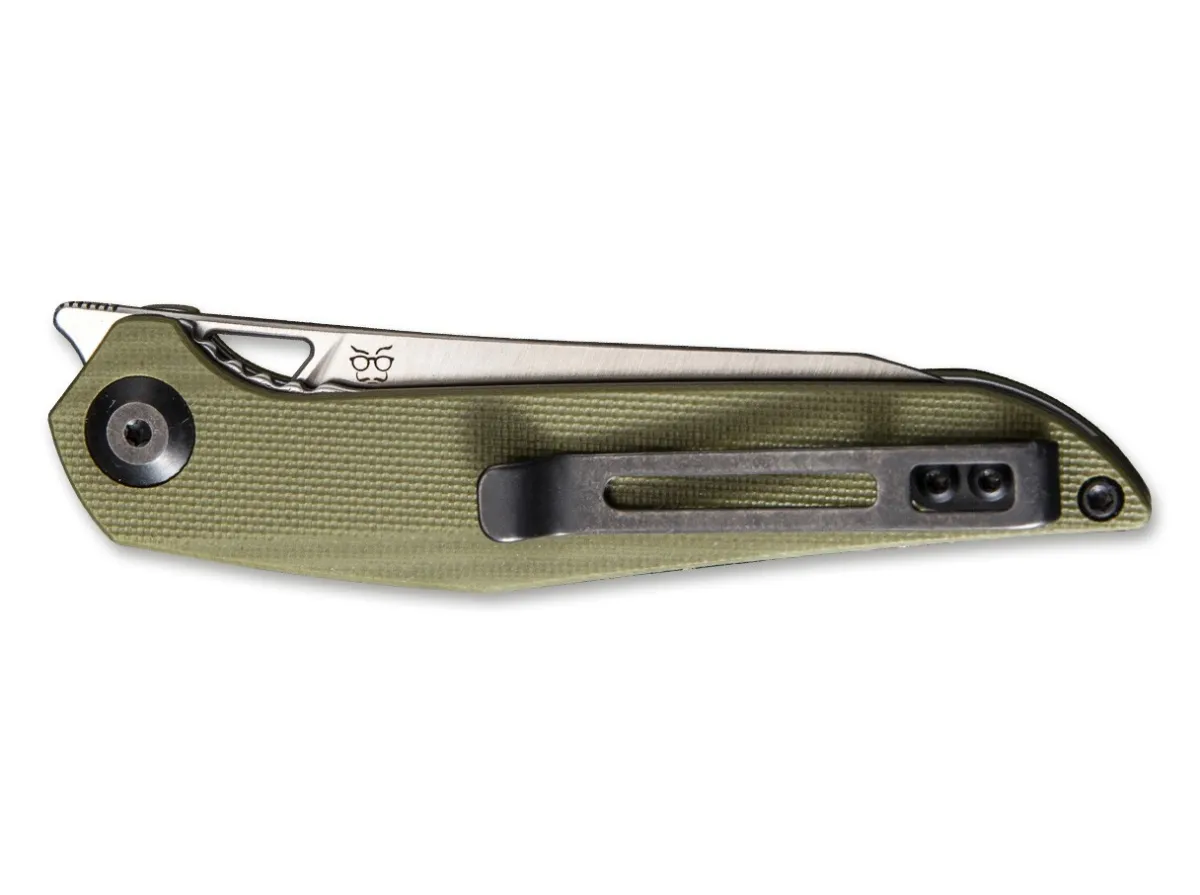 The Mckenna By Elijah Isham Is A Stainless Steel Linerlock With G10 Handle Scales. The Blade On Ball Bearings Can Be Opened With A Front Flipper Or Thumb Opening. The Slimline Folder Has A Reversible Clip (Tip-Up/L-R).