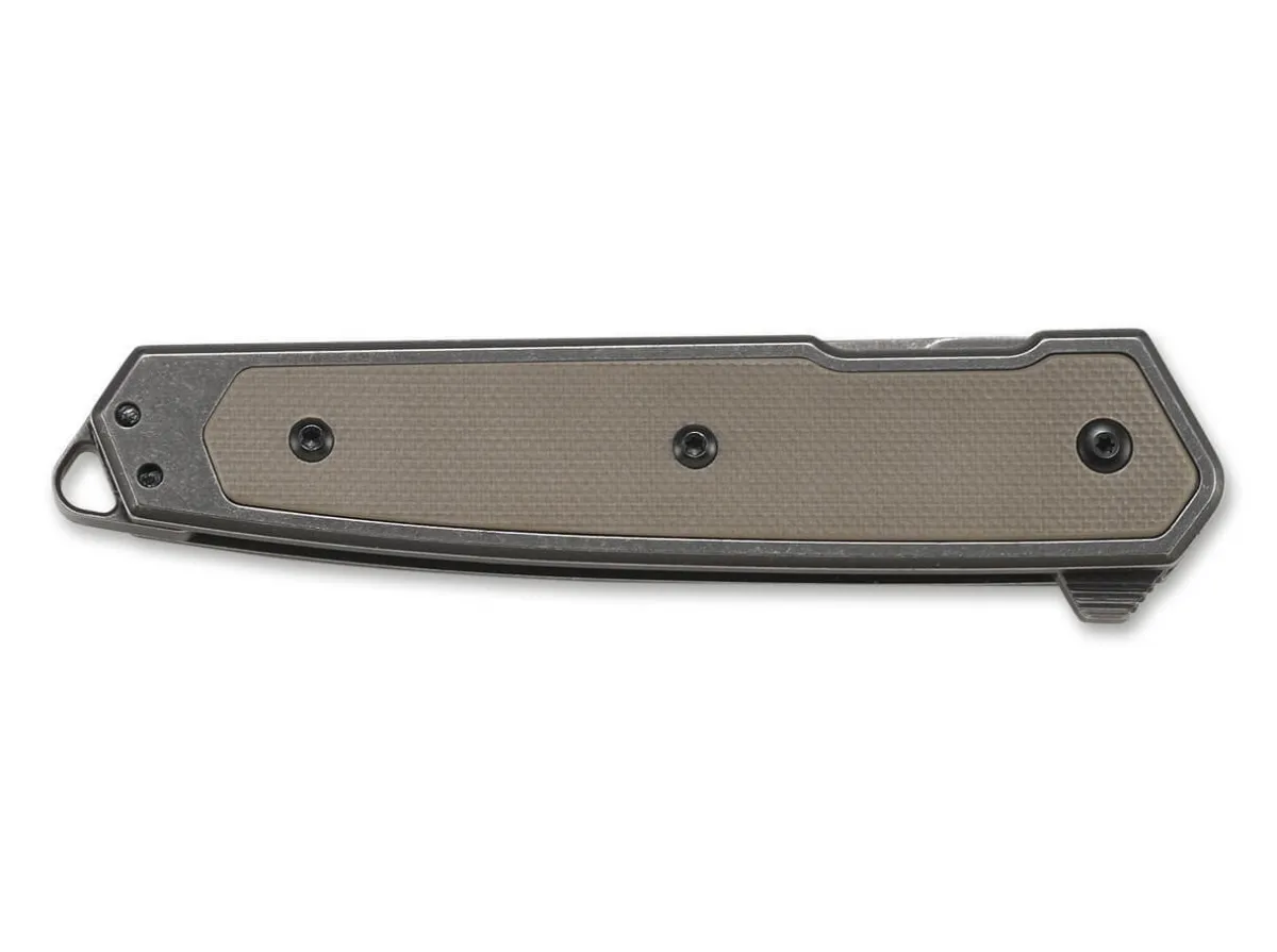 The Straight-Lined Folder By Richard Rogers Focuses On Angular Shapes And Scores Points With Its Absolute Suitability For Everyday Use. The Cutting Blade Made Of D2 Has A Black Stonewash Finish And Is Opened With A Flipper. The Knife Is Secured By The Robust Frame Lock, Which Is Housed In The Sturdy Stainless Steel And G10 Handle. Its Muted Colours Give The Knife A Tactical Look. With A Lanyard Loop And A Clip (Tip-Up/R).