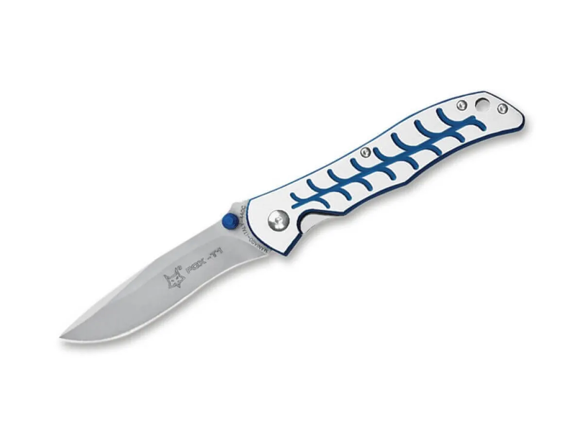 The Fox T1/2 Blue, Designed By The Grand Old Master Bob Terzuola, Is A Modern Pocket Knife For Everyday Urban Life. It Is Equipped With A Playful Handle Made Of Aluminium With Fancy Blue Ornaments. The Matt Blade Made Of 440C Is Opened By A Thumb Stud And Reliably Locked By A Sturdy Linerlock. With Reversible Clip.