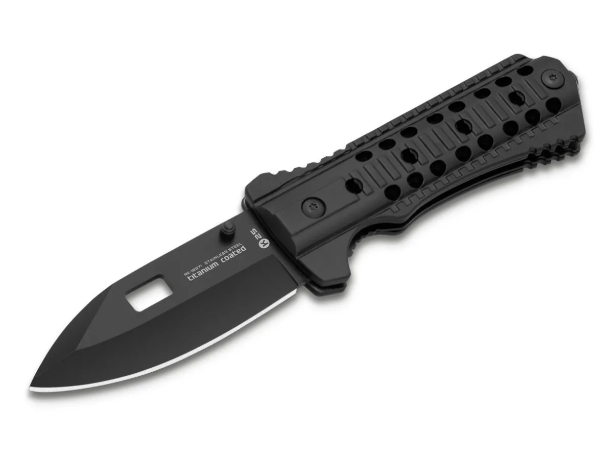The Picatinny Tactical Folder Is A Folding Knife With An Aluminium Handle In The Style Of The Picatinny Rails Found On Many Modern Firearms. The Titanium Coated Blade Is Made Of 7Cr17Mov. A Tungsten Carbide Glass Breaker In The End Of The Handle Completes The Equipment. Supplied With Nylon Pouch.