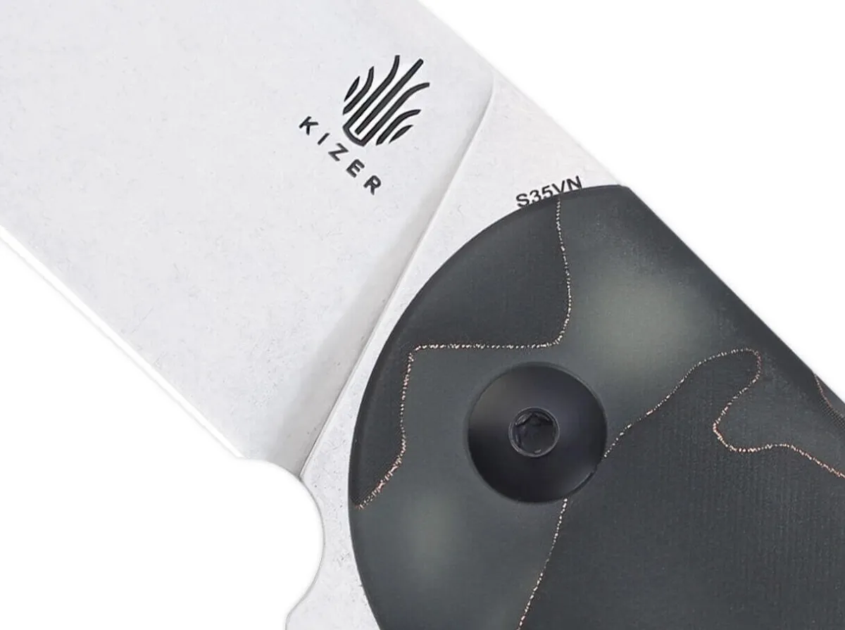 Left-Handed Version Of The Kizer Gemini S35Vn Raffir. Together With Ray Laconico, Kizer Has Developed The Gemini, Which Is Based On His Handmade Jasmine Folder And Emphasizes Its Slim Character. The Construction Of The Production Model Is Excellent. It Features A Handle Made Of Raffir, A Composite Of Metal And Resin. The Flat-Ground Cpm-S-35Vn Steel Blade Has A Stonewash Finish And Runs Smoothly On A Ceramic Ball Bearing. The Pocket Knife Is Opened By Flipper, Locked By The Reliable Liner Lock. With Removable Clip (Tip-Up).