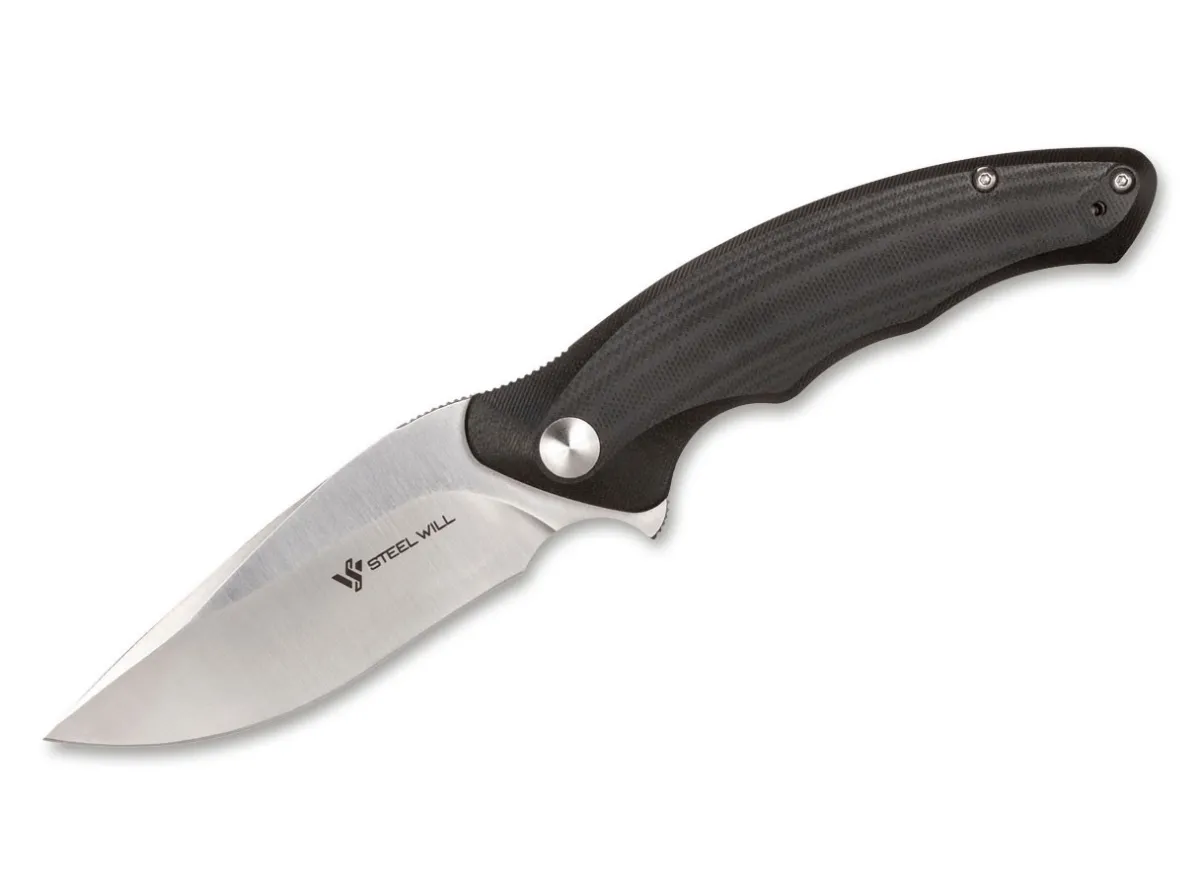 The Slim Aesthetic Of The Steel Will Avior Is Supported By A Well-Thought Out And Functional Design. The Contoured G10 Handles Ensure A Comfortable Grip, House Inset Stainless Steel Liners And Feature A Powerful Drop Point D2 Blade With Ceramic Ball Bearings In The Pivot. A Downward Curving Flipper, Swedge And Finger Choil All Work In Perfect Harmony Offering Extraordinary Control And A Secure Grip. This Version Features A Satin-Finish Blade And Ergonomic Black G10 Handle Scales. With Reversible Clip (Tip-Up).