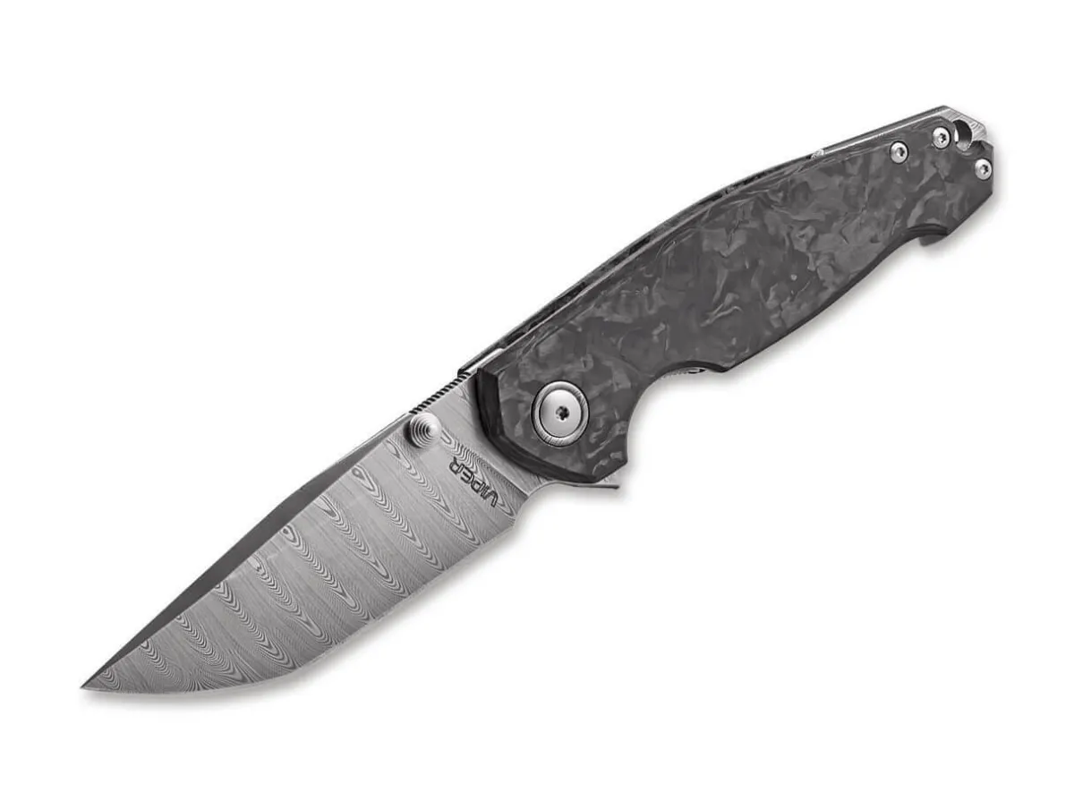 The Viper Katla Was Named After One Of The Most Active Volcanoes In Iceland. Accordingly, It Was Only Logical That The Award-Winning Scandinavian Designer Jesper Voxnaes Took Up The Cause And Designed A Spirited Knife With High Functionality. The Droppoint Stainless Damascus Blade Is High-Strength And Ideal For Difficult Work. The High-Quality Carbon Handle Fits Perfectly In The Hand And Has A Cnc-Milled Damascus Backspacer With A Sturdy Lanyard Loop. Optionally, The Practical Flipper Or The Classic Thumb Pin Facilitate The Opening Of The Pocket Knife. Thanks To The Secure Linerlock Release, The Fiery Temper Of The Viper Katla Is Tamed. The Titanium Clip On The Back (Tip-Up) Allows The Attachment To The Pocket.