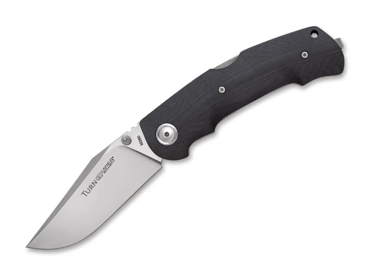 The Elegant Viper Turn G10 Black Is Always On The Right Track. The Extremely Robust Blade Made Of M390 Is Opened By A Thumb Stud And Turns Back After Work With The Help Of The Sturdy Stainless Steel Backlock. The Black G10 Handle Is Ergonomically Shaped And Fits Securely In The Hand. Supplied With A Lanyard Hole And A Classy Titanium Clip (Tip-Up/R).