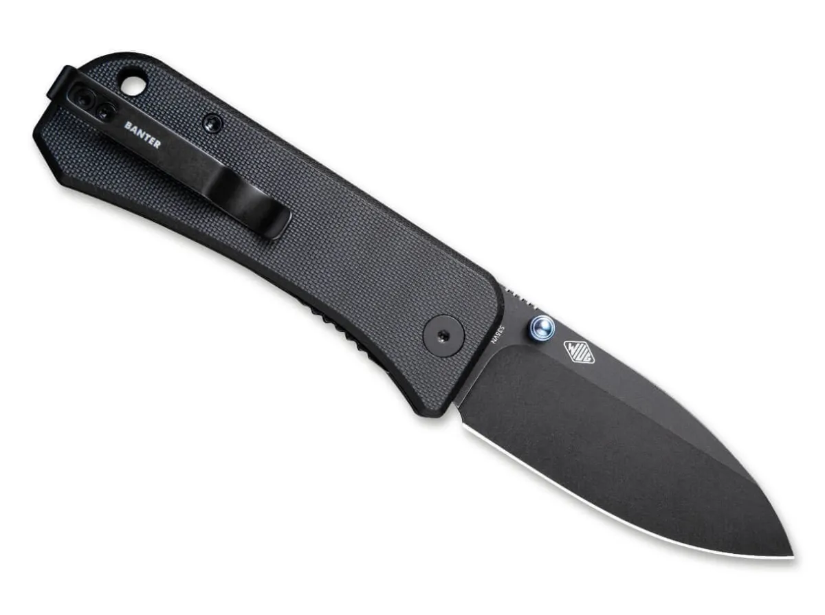 The Dependable Banter From We Knife Is Made For All Kinds Of Fun. But This Pocket Knife Designed By Ben Peterson Does Not Look For Its Kicks In The Basement, But Makes A Beeline Straight For Its Next Outdoor Adventure. Its Extremely Sharp Blade Made From Powder-Metallurgical Cpm-S-35Vn, Which Offers Good Edge Retention, Can Only Raise A Tired Smile For The Everyday Tasks At Hand. It Features A Nonslip, Black G10 Handle, A Thumb Stud And A Linerlock. With Lanyard Hole And Clip (Tip-Up).