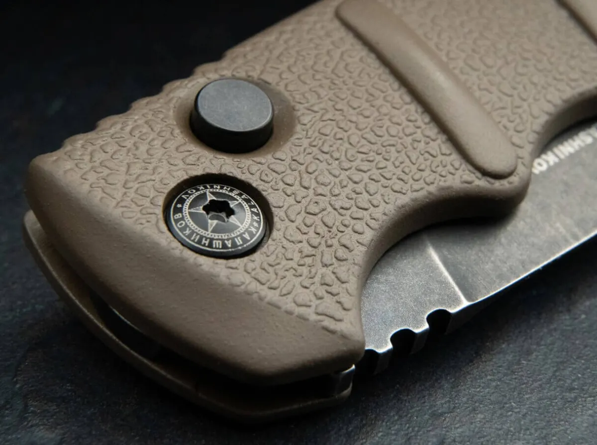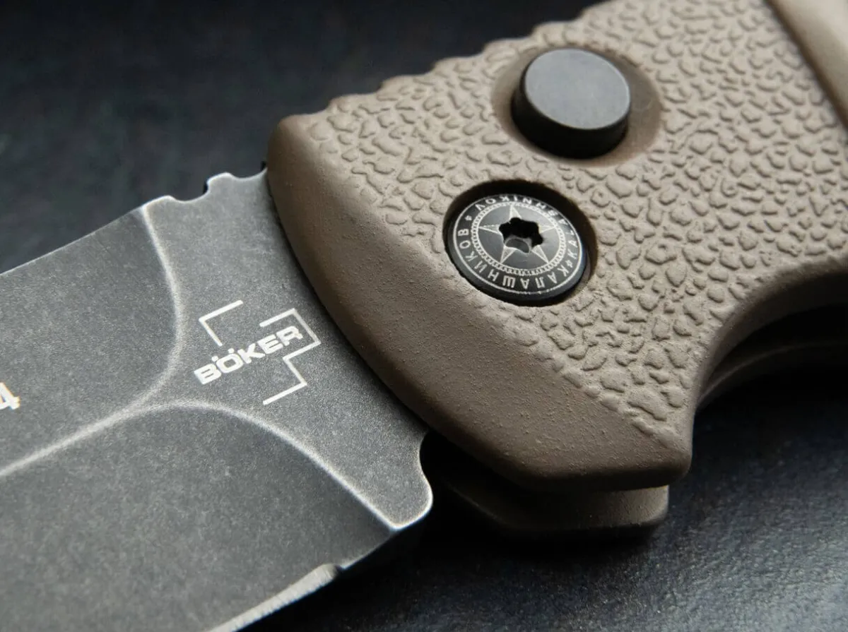 The Boker Plus Aks-74 Brown Dagger Smokewash From The Kalashnikov Series Is Certainly One Of The Most Popular Models In Our Range And Has Been Produced In Numerous Different Variants Over The Years. The Brown Aluminum Handle Is Strongly Reminiscent Of The Bayonet Of The Famous Assault Rifle, And The Raised Textured Panels Also Provide A Secure Grip In Any Situation. The Uncoated Spearpoint Blade Is Made Of Stainless D2 And Can Be Secured By Slide Lock In Addition To The Push Button. With Catch Strap Eyelet And Practical Clip (Tip-Up/R).Translated With Www.Deepl.Com/Translator (Free Version)