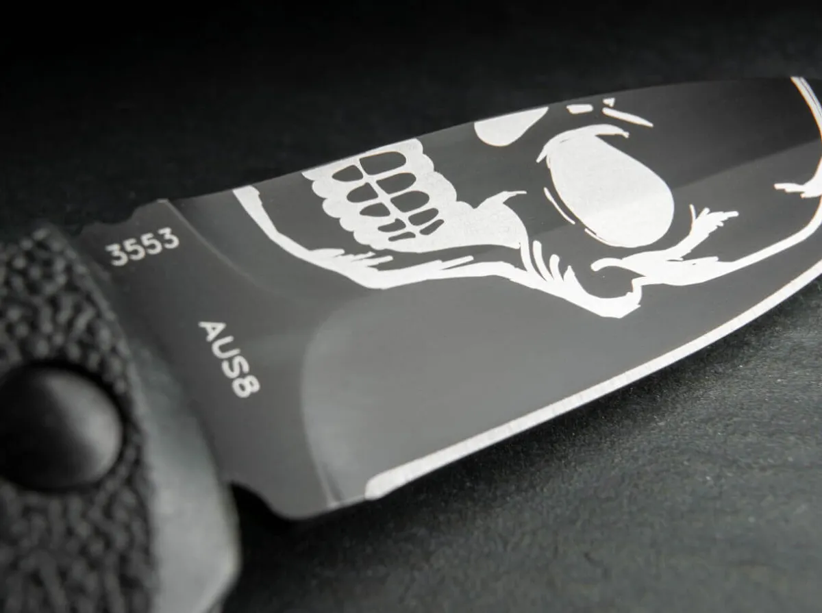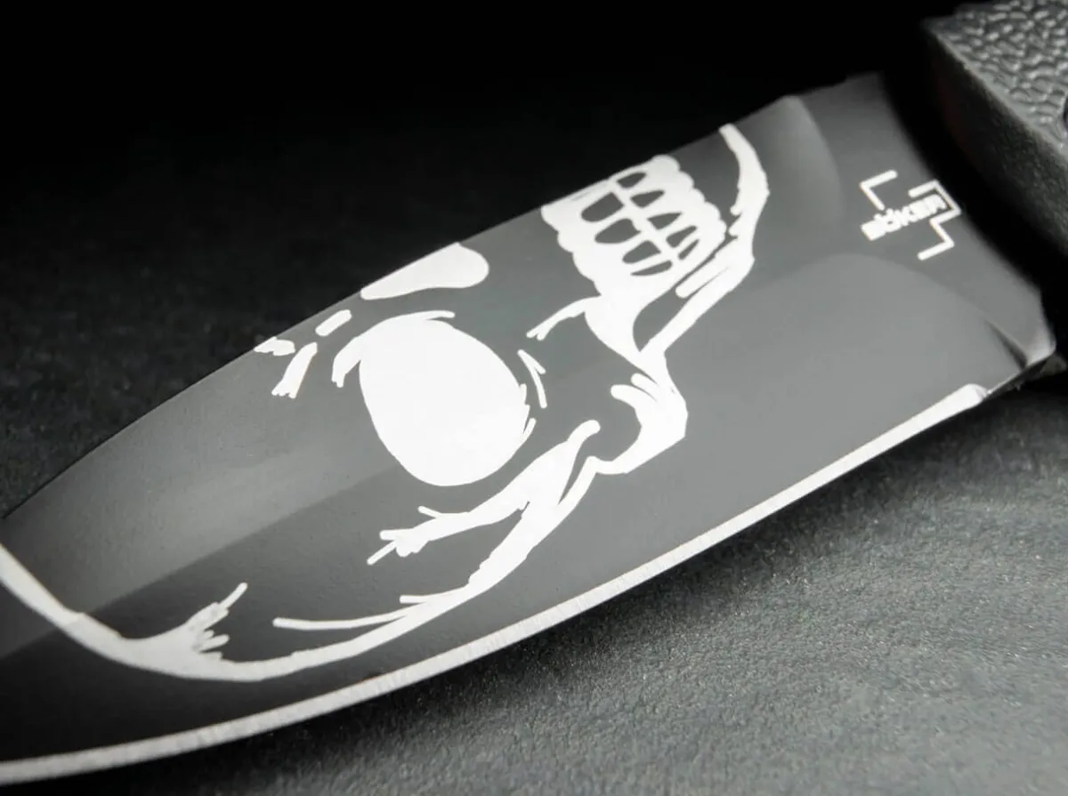 The Boker Plus Aks-74 From The Kalashnikov Series Is Certainly One Of The Most Popular Models In Our Range And Has Been Produced In Numerous Different Variants Over The Years. The Black Aluminum Handle Is Strongly Reminiscent Of The Bayonet Of The Famous Assault Rifle And The Raised Structural Tracks Provide A Secure Grip In Any Situation. The Black Coated Blade With Skull Laser Engraving Is Made Of Aus-8 Stainless Steel And Can Be Secured By Slide Lock In Addition To The Push Button. With Clip (Tip-Up).