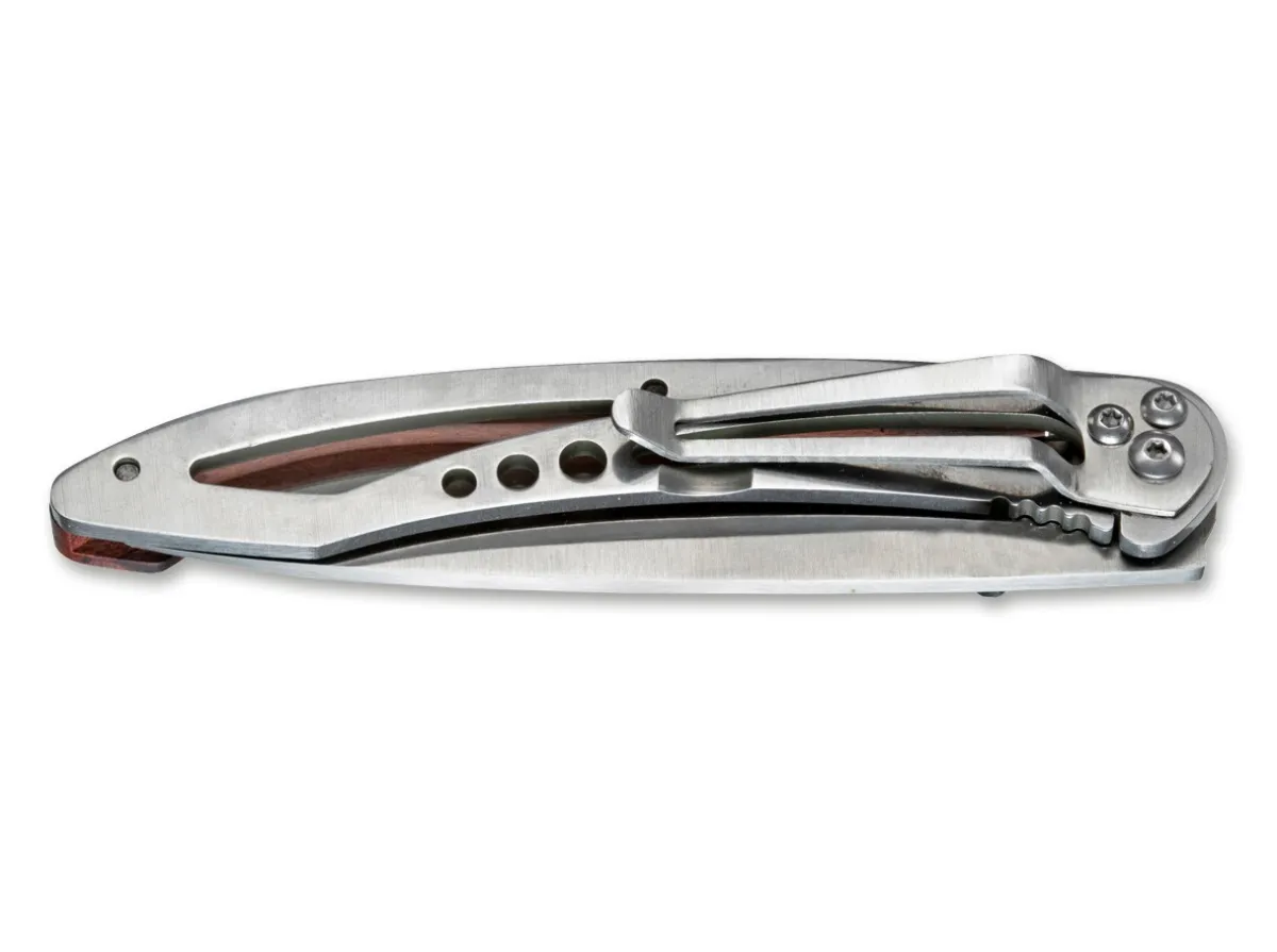 With The Magnum Dejavu, We Managed To Take The Almost 30-Year-Old Pioneering Invention Of The One-Piece Self-Supporting Framelock And Make It Even Better. In The Original Construction, The Handle And Lock Consist Of A Single V-Shaped Spring. The Handle And Blade Are Just Connected On One Side – A Relatively Weak Connection. For The Dejavu Knives, A Spacer With A Screw Was Placed Right Next To The Blade Shaft. Both Hold A Small Counter-Plate. Thus, The Blade Shaft Is Connected On Both Sides, Just Like A Regular Folder, Which Distributes The Load Symmetrically. This Makes The Knife Much More Stable Without Compromising The Clean And Slender Character Of This Design. Handle Scales Consist Of Classic Cocobolo. The Knife Can Be Opened One-Handed.